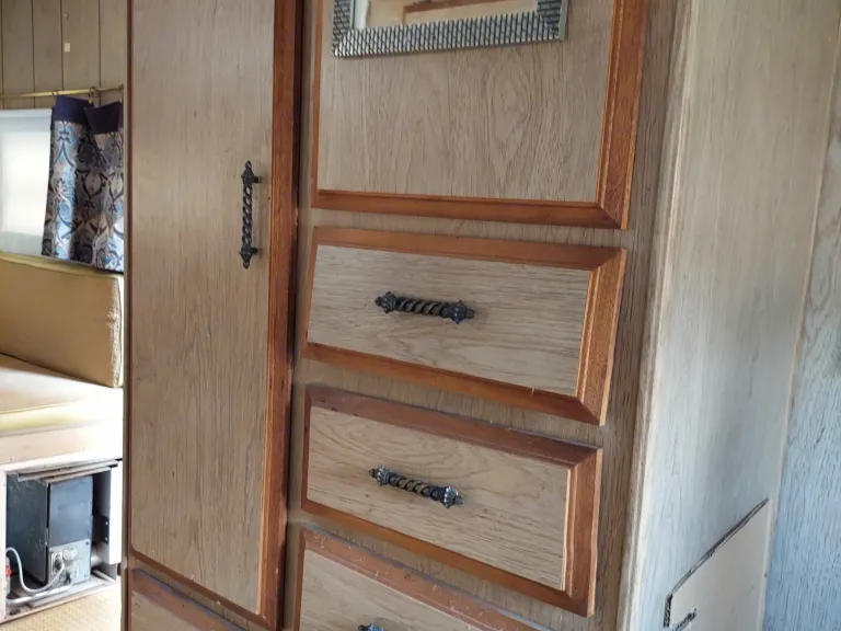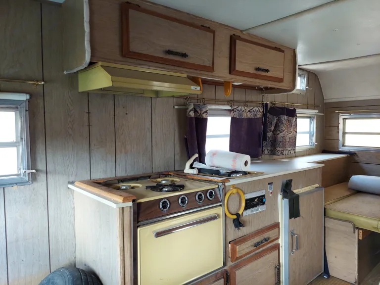 Sleeps 4 comfortably, One bed is a fold out into a queen and the 2nd bed is a dinning table converted to a queen. Heater works well one propane tank will be included to use. LED lights work off of a battery which is included. Fan also runs off battery. There is an ice chest in camper can be used but does not supply cold air to it, needs ice. Camper has 4 support jack stands to help level/support camper once set in place. Camper pulls great behind vehicle but is heavy for a 14 footer. Oldy but a goody. Great for small family trips or rugged adventures/camping/hunting/fishing ect... Original trailer lights do not work but new led trailer lights work well on a 4 plug connection. What's includedCamper is equipped with battery for lights and fan. Propane for heat and stovetop cooking. 4 jack stands for support when camper is set up. AstroTurf rug to be placed at outside entrance for keeping a clean area just outside the camper if wanted. Spare tire strapped near the fold out couch/bed in case of emergency. paper plates, plastic utensils and ground coffee in cabinets. coffee pot and pans for cooking in drawers.RecommendationsCamper has been used on many fishing, hunting, and hiking trips. It is an easy set up and keeps you out of the weather if needed. Hard sided walls keep the wind out but has a screen door and a fan if airflow is wanted in the camper. It has a good little heater in it and it works well with the little fan in front to push the warm air around. Other things to noteCamper has an oven but has not been used in many years. It should not be used. water tank does not hold water so make sure to bring your own water for drinking, cooking, ect... no electrical hookups or charging stations. bring a generator or portable solar panel if needed for phone charging. No smoking inside camper.