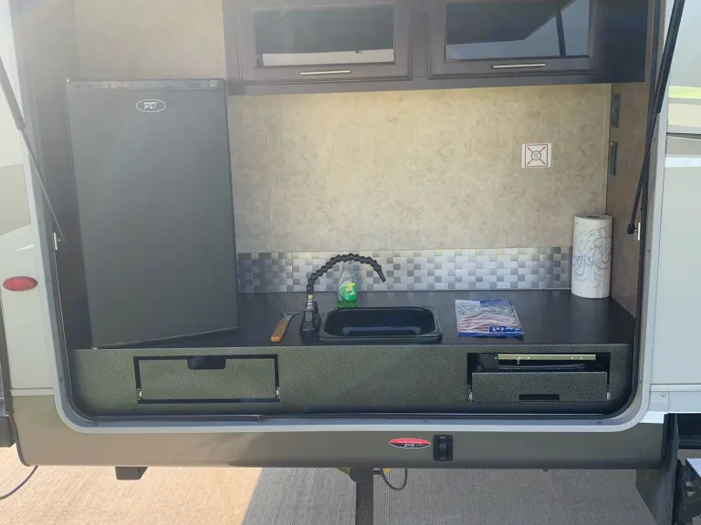 Beautiful, Clean easy setup. Our trailer has all the space you need for a family to relax. The bunkhouse allows you to have a spot for the kids to enjoy and get in out of the heat if need be. The kitchen is fully stocked and ready for use. Outdoor kitchen has a second fridge to store food as well as a sink to assist an easily grilling experience. The outdoor kitchen also has a cooktop and a propane grill that