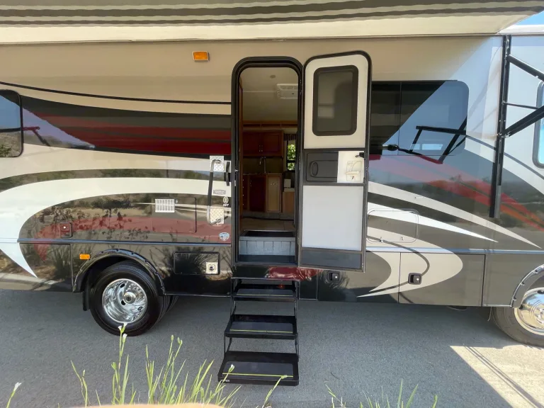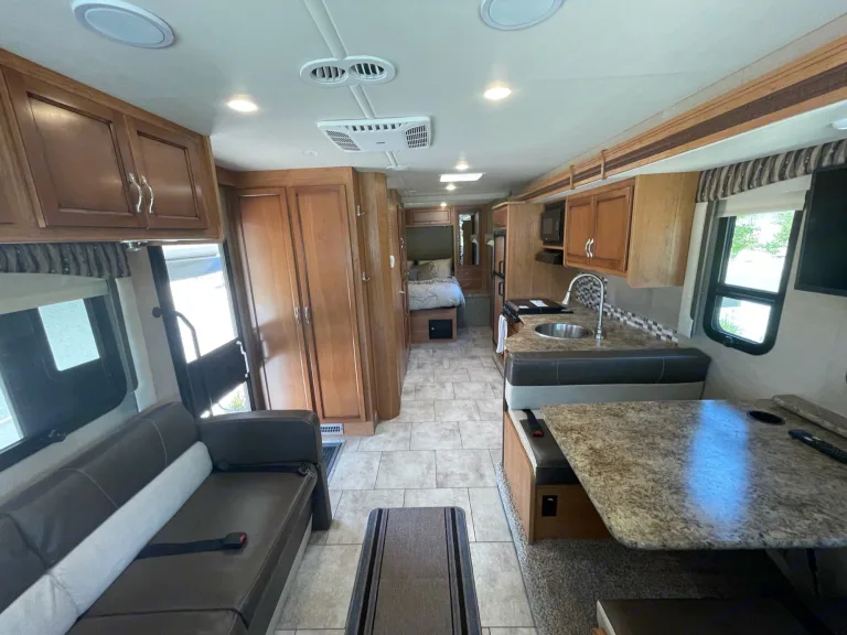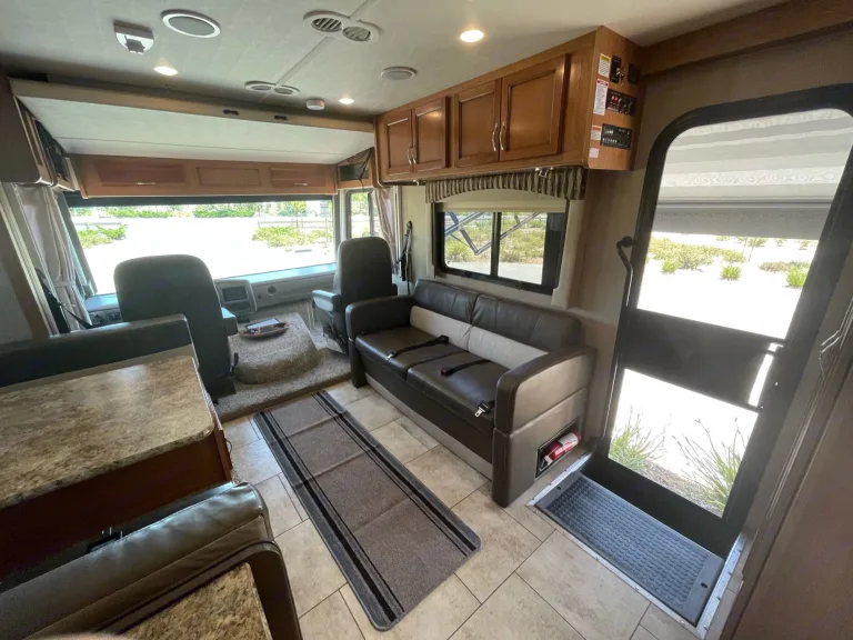 Step up to the next level with this exquisite and PET Friendly Motorhome. It sleeps 8 people and has a private bedroom with walk around queen bed, closet and two nightstands. This spacious Motorhome has a large kitchen and lots of storage. It has a large slide out for extra space. It has a hydraulic queen bed over the cab, full size sofa and dinette that convert to full size beds. This fully self contained unit works well with or without hook ups with its large generator, and 50 gallon water tank. This large Motorhome features automatic levelers, automatic awning, newer tires and low mileage. Take your family on a great adventure in style. What's includedFresh linensRecommendationsGreat for the Beach!Other things to notePet Friendly. Fully self contained.