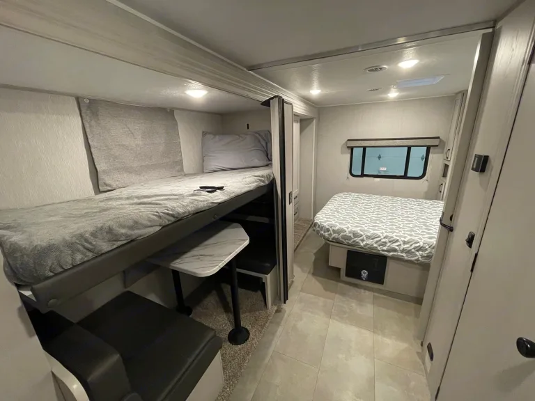Brand New!!! 2024 Coachmen Freelander 30BH - Loaded up with nearly everything you could need to camp. This Class C Bunkhouse can sleep up to 10 people if you have a mix of adults and children, or will sleep roughly 7 regular-sized adults, with a queen master bed, twin-sized bunks, a loft bed above the cockpit that can sleep two, a jack-knife couch, and a dinette that converts to a sleeping area as well. A great feature about this unit is that there is a smaller dinette in rear center that converts to the bunk area, so if you need more room to sit people for the drive, this is fantastic! The kitchen is fully-equipped with a full-sized electric fridge, microwave, sink, and 3-burner stove with oven!