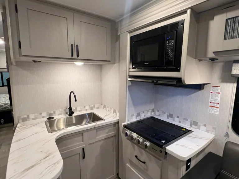 Brand New!!! 2024 Coachmen Freelander 30BH - Loaded up with nearly everything you could need to camp. This Class C Bunkhouse can sleep up to 10 people if you have a mix of adults and children, or will sleep roughly 7 regular-sized adults, with a queen master bed, twin-sized bunks, a loft bed above the cockpit that can sleep two, a jack-knife couch, and a dinette that converts to a sleeping area as well. A great feature about this unit is that there is a smaller dinette in rear center that converts to the bunk area, so if you need more room to sit people for the drive, this is fantastic! The kitchen is fully-equipped with a full-sized electric fridge, microwave, sink, and 3-burner stove with oven!