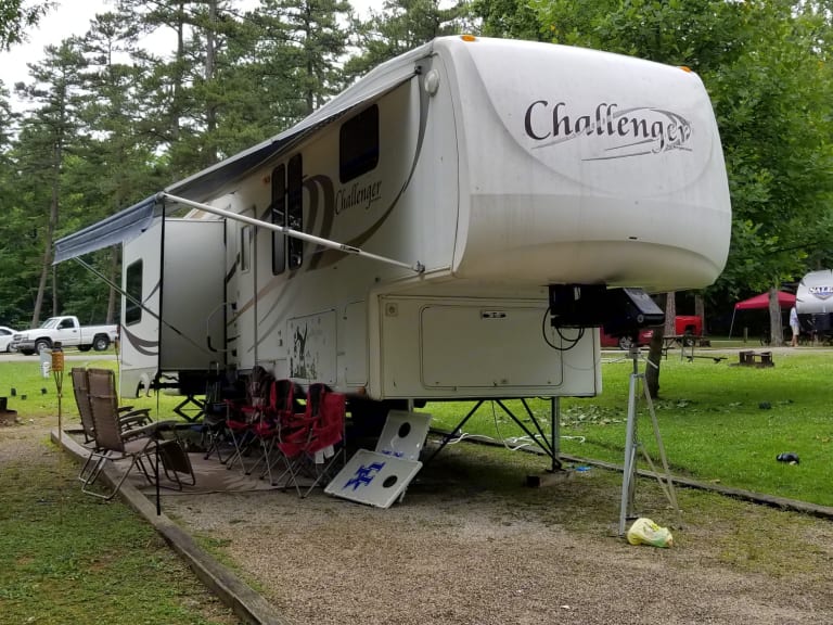 2007 to Keystone Challanger 5th wheel camper. 32 feet long with king size bed and sleeper sofa with twin fold out. Good condition.