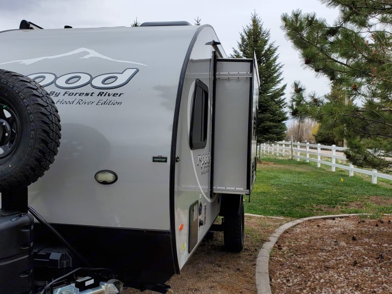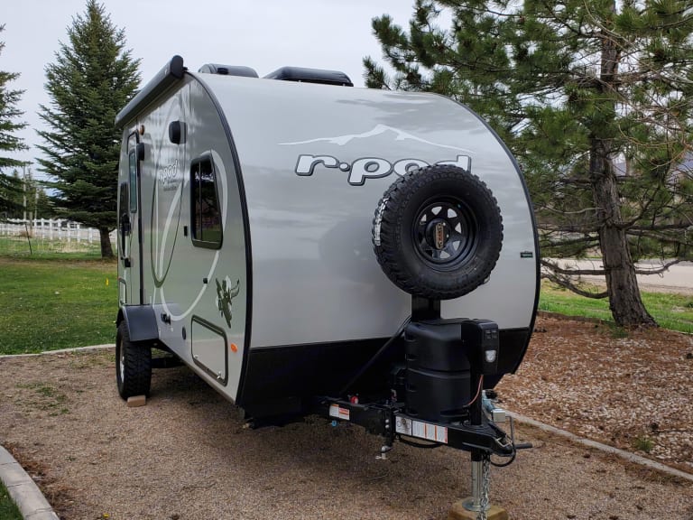 2019 Forest River R-Pod 189 travel trailer. This trailer is in amazing shape and will be sure to help you enjoy your adventure. It is lightweight and easy to tow and is just the right size for most campsites. It has an outdoor grill, outdoor shower, solar panel, and the spare tire is mounted on the front so its easy to add on bike racks and storage racks. Its a great layout and has the separate shower and a couch in the back so you can relax and watch a show. It has a bluetooth speaker system with speakers inside and out that add to the camping experience. It is a fully loaded trailer that will be sure to not disappoint. What's includedEverything you need to enjoy camping is included. It comes with four camp chairs, roasting sticks for the fire, towels, linens, pots, pans, and all the other basic necessities. When you pick up it will have a full battery, full propane tank, and a full water tank if that is what you want. RecommendationsIf your not sure about where you want to go please ask us and we will share with you our favorite places and some of the hidden gems that we love going to.