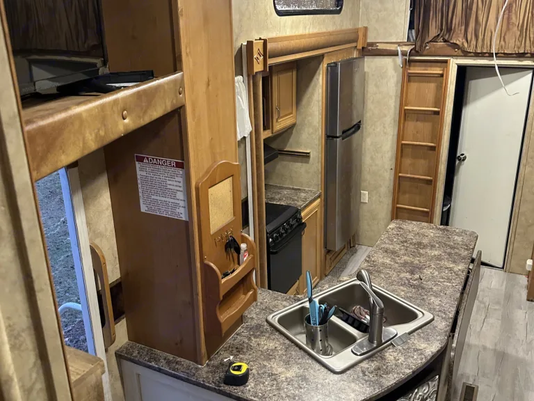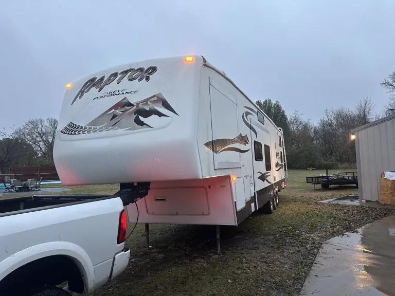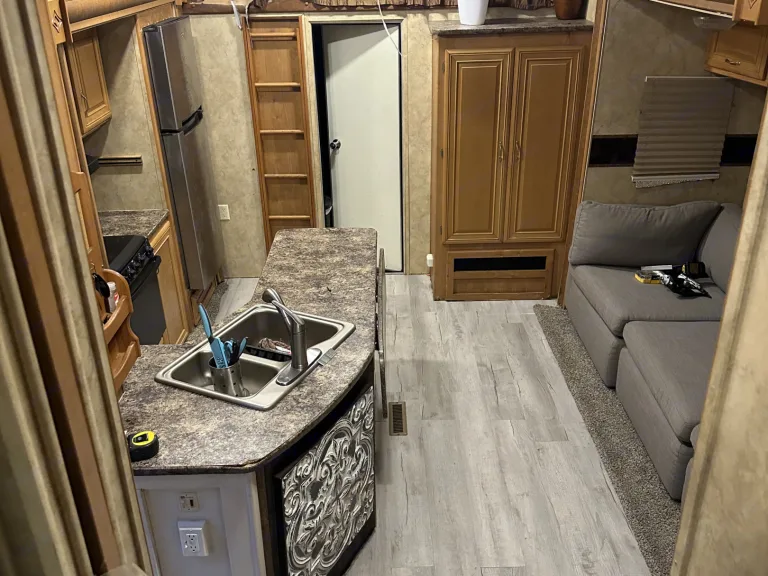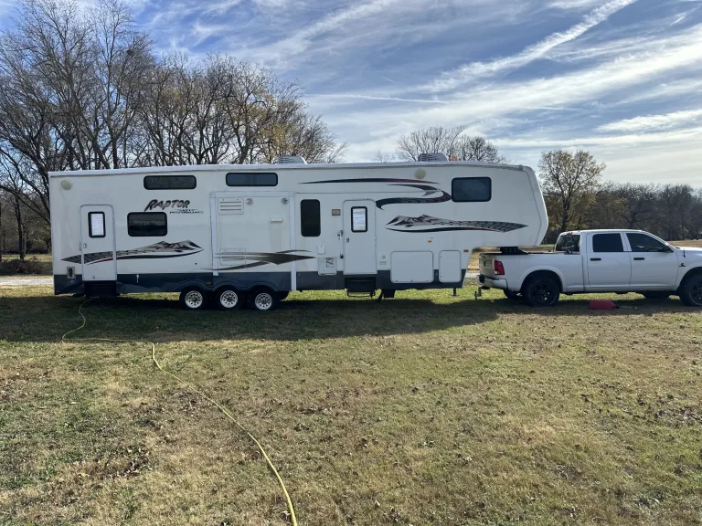 5th wheel toy hauler with a 12’ garage! 3 tv’s 3 queen beds, new Comfy sectional couch!! Privacy and seclusion in front master area with toilet area enclosed. Pocket door to shut master area, curtain to shower in privacy as well! Plenty of room, sleeps 6 in the beds, and one on the couch if needed. There’s space in the garage to put an air mattress for additional sleeping room if needed!! What's included• Cooking utensils