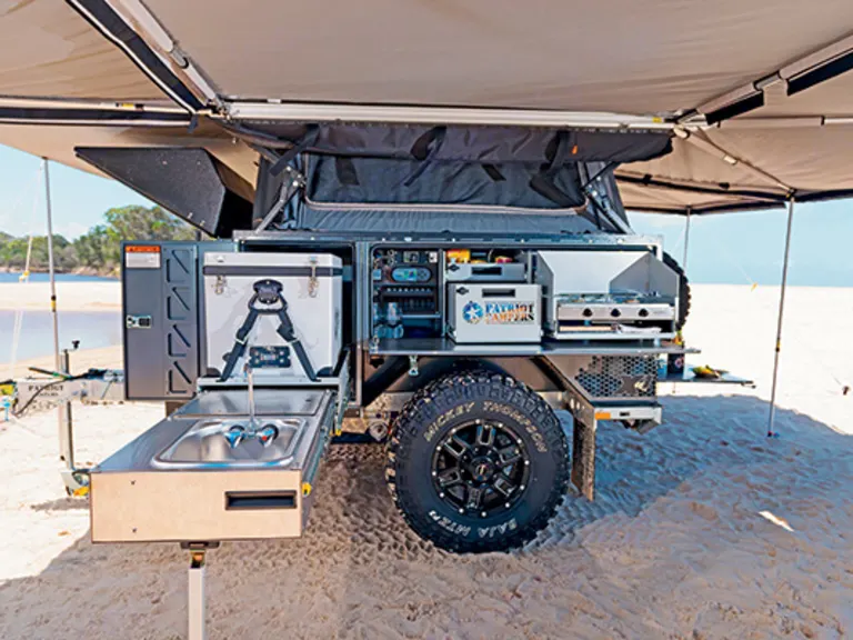 The Patriot X1 GT is an off-road, off-grid beast. This camper trailer is perfect for family camping trips or extreme overland adventures. It is lightweight, durable, and provides water, power, shower, Full Kitchen (2 burner stove, Weber grill, fridge/freezer, sink), Roof top tent w/ a King size bed and weatherproof space for an additional 4 people. If you're looking to take it off road it is more than capable with: Independent suspension, Rigilite hybrid chassis and Micky Thomson MTZs tires. Check it out at:Voted Camper Trailer Australia Magazine’s camper trailer of the year Five years running, Patriot Campers made its U.S. launch last year. And that’s good news for overlanders.