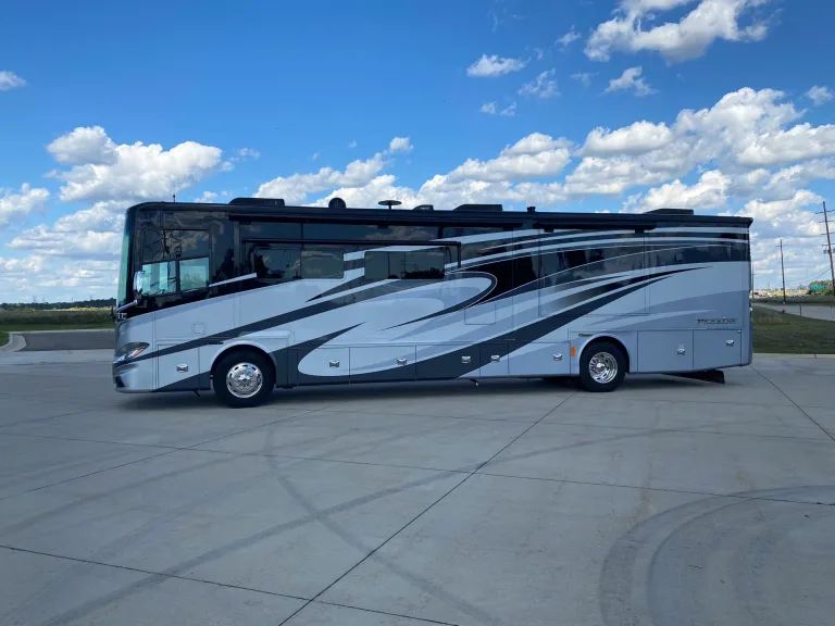 This is the ultimate in luxury camping. With four slides, you have a very large living room & kitchen, with a master bath plus a half bath. You will have loads of room to relax. The coach is equipped with residential refrigerator, induction cooktop, large convection microwave, large toaster oven, blender, and coffee maker. Lots of solid surface countertops with expandable island and a dining table that comfortably seats 4. The coach comes fully equipped with all the cookware, Tommy Bahama dinnerware and all accessories. Under the awning on the patio you will have outdoor rugs with chairs and even an outdoor television. You even have a washer & dryer.What's includedFully equipped with all linens, cookware,Tommy Bahama dinnerware, towels, beach towels, etc.. you just show up!RecommendationsDisney World, Daytona Speedway, Jacksonville, Tampa or other areas in north central & central FloridaOther things to noteAbsolutely immaculate. A extremely relaxing way to camp.Because driving this type of class A Requires some level of experience to operate safely, we do the delivery & setup. You get to enjoy all the benefits of this amazing coach without the stress on the highway & without the much increased insurance expense. The decrease cost of the insurance alone, should almost pay for the delivery & setup.Exceptions can be made for drivers with previous Class A motor home/coach experience or other Comparable vehicles, or drivers who have received professional training to drive class A type vehicles. For The reasons stated above, We reserve the right to determine who is qualified.Instead of renting 2 rooms for your family, why not rent a luxurious, spacious, fully equipped home on wheels?There is a minimum 4 day rental