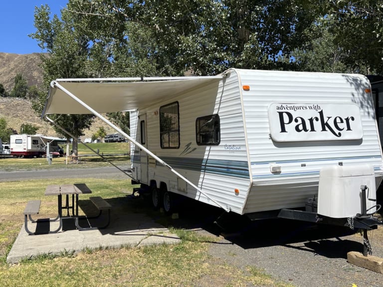 Step into the charm of glamping with Parker, our beautifully renovated 1999 Coachman Catalina. This adorable RV combines style and comfort, making it the perfect home on wheels for your next getaway.Rental Options: