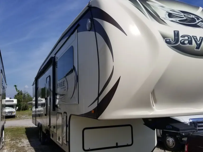 2015 Jayco Eagle Premier 5th wheel. Five slide outs, queen size bed, full kitchen, full bath, full family room, Hdtv Antenna, outdoor grill, outdoor shower, and outdoor entertainment system.