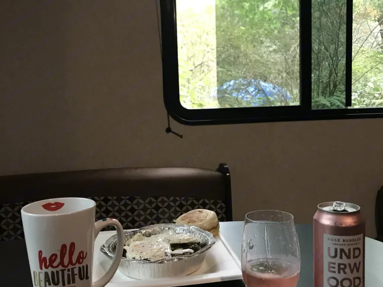 Glamping life. Comfortable and clean. Queen bed with a memory foam mattress topper, dinette that converts to approximately a twin, it’s a little bigger and a sofa that folds down to a small bed. 2-3 adults can stay comfortably. Includes all the dishes, utensils and drink ware you should need.