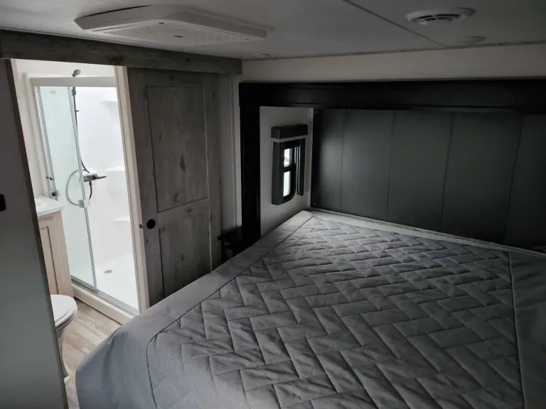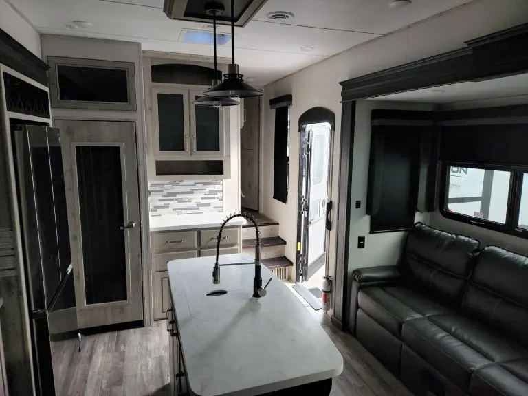 Large bunkhouse fifth wheel with lots of storage sleeps a max of 12. Full bathroom in the front and 1/2 bathroom with its own entry for the bunkroom. Electric fireplace. Full size residential refrigerator inside and a mini refrigerator outside. Outdoor sink, outdoor TV, folding outdoor tables and extra canopies available. What's includedLinens, chairs, a few indoor and outdoor gamesOther things to noteAbsolutely No smoking inside!