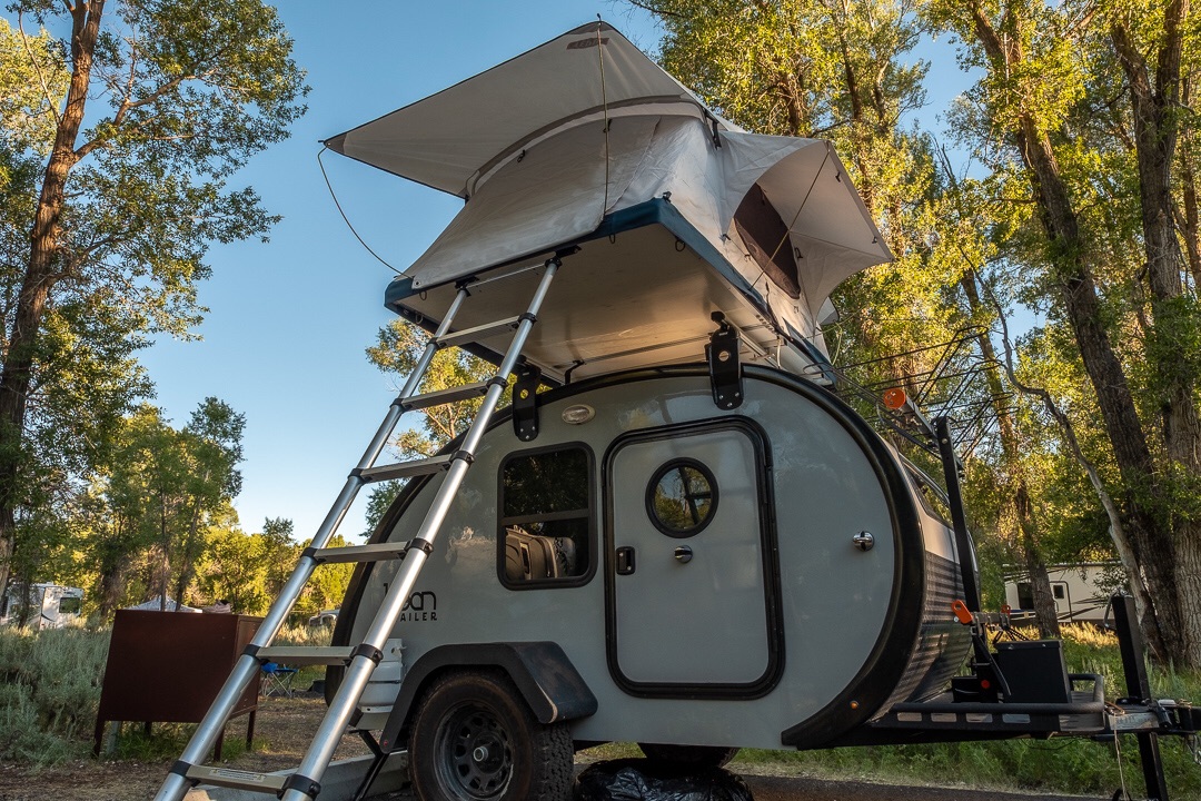 This trailer gets noticed because it is something amazing and unique. While compact, there is space for everything. Amenities of a bigger trailer, but still able to “camp.” Trailer is super light (1800 lbs dry weight) and can be pulled by most SUVs and trucks. The trailer includes a fridge, fold-out stove with two burners, LED lighting, counter space, storage, sink, water jug, and space for up to 4 people to sleep in trailer or rooftop tent. Bike rack can accommodate up to 6 bikes.2-inch ball connector. 7 pin connector.Everyday cooking necessities like oven mitt, lighter, and can opener included.Want a good starting point for Utah’s many national parks or heading up to Yellowstone? This is the trailer for you.