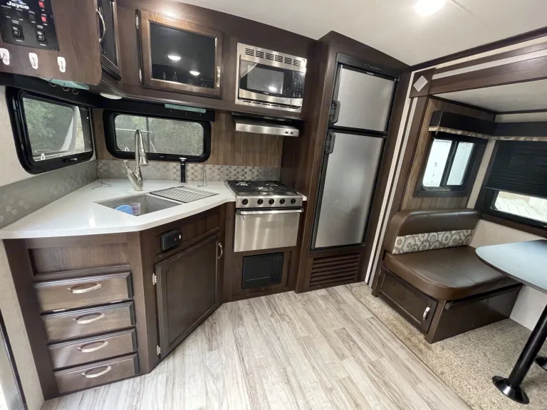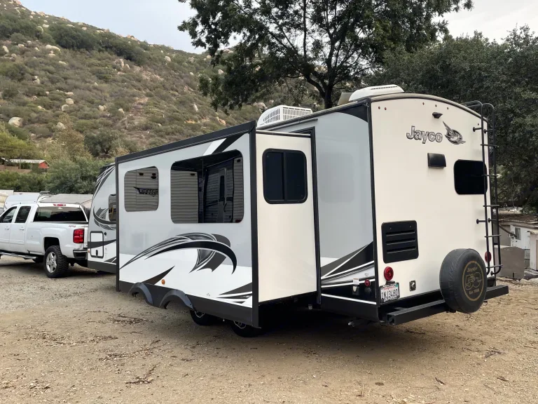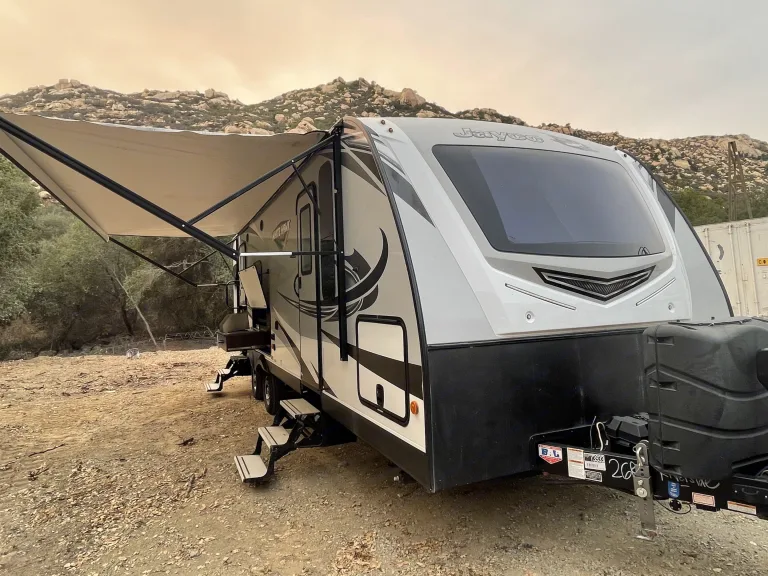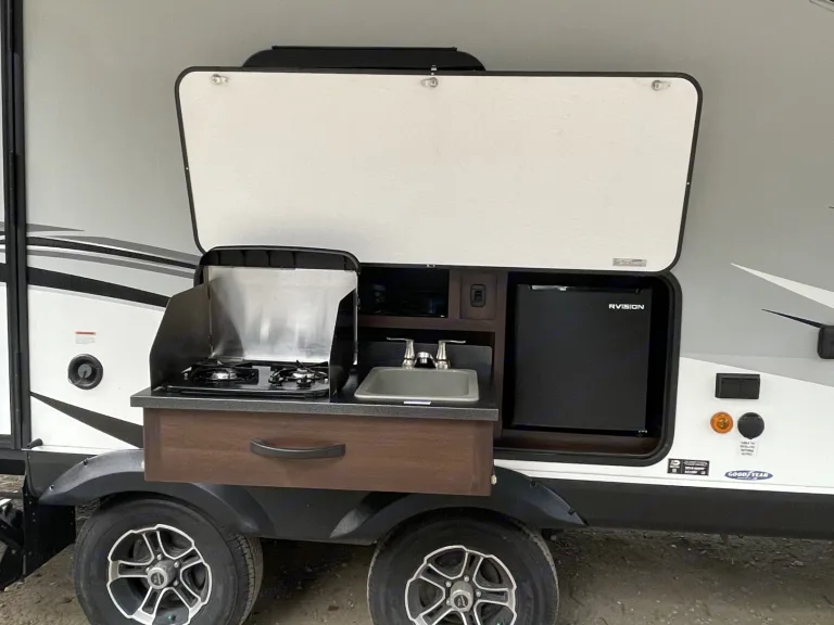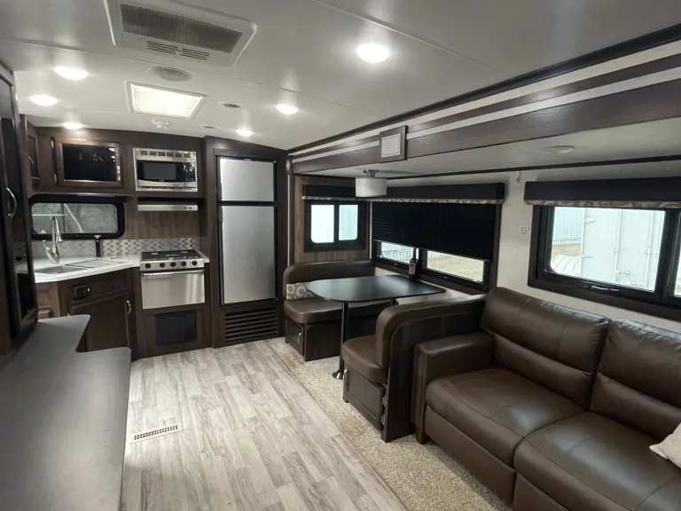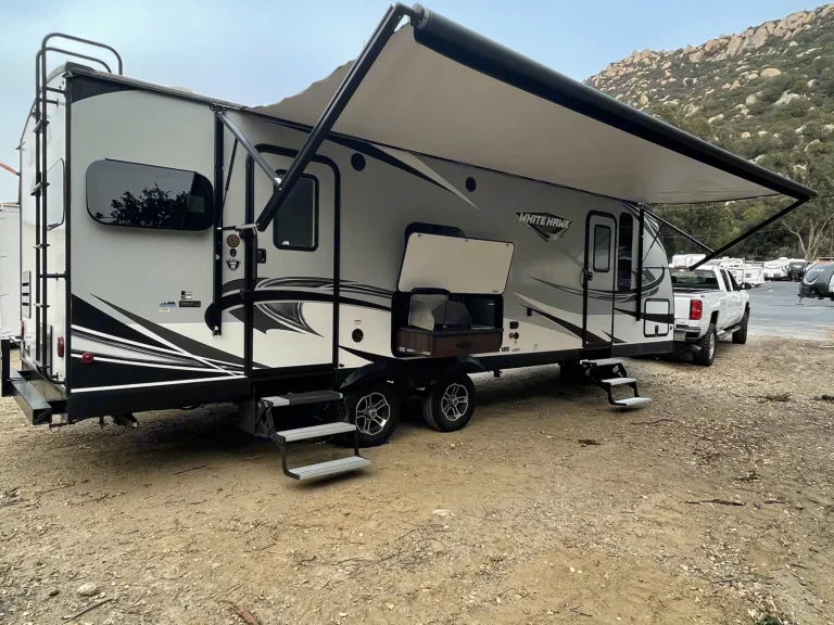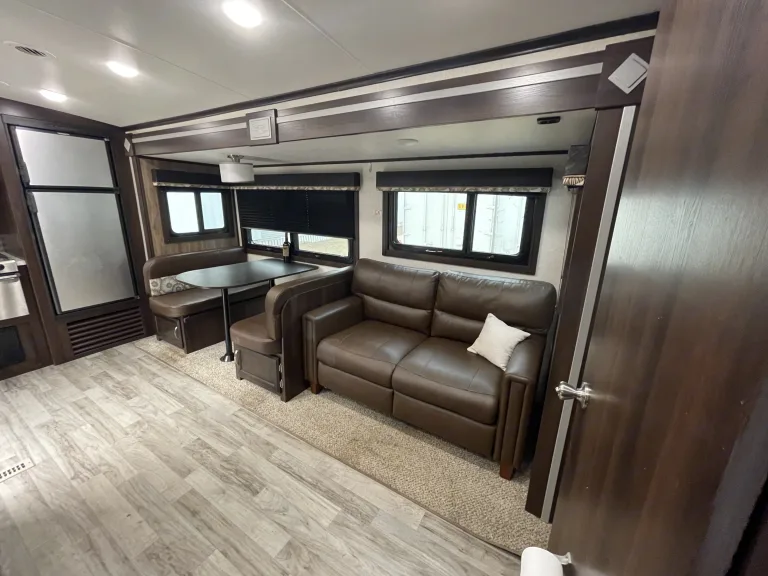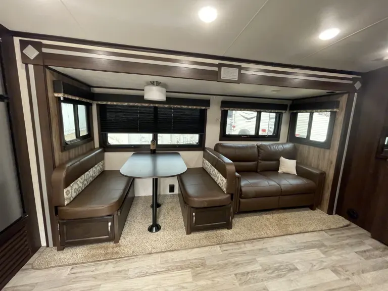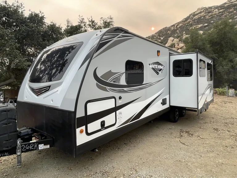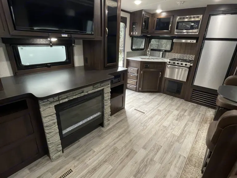 Fox is a stunning rig with modern finishes promising a comfortable stay for your family's next big adventure! This 32ft beauty contains a full kitchen, 4-person dinette, 2-person sofa, full bathroom, and a master bedroom. The dinette and sofa are capable of converting into sleeping areas which allows this trailer to sleep 5-6 people. Other notable features include an electric fireplace with a heater, 40" LED TV, indoor/outdoor surround sound speakers, two skylights, one AC unit, outdoor shower, outdoor awning with LED lights, and outdoor cooking area with two burners, sink, and mini-fridge. What's includedIncluded with your stay will be clean linens, four camping chairs, toiletries, kitchenware (plates, spoons, knives, forks, pots/pans, etc.), and cooking spices. The trailer also comes with a folding table which is located in the storage compartment. Firepit may also be included depending on the destination.Other things to noteCan deliver and set up the trailer to the destination, just let me know the address. I'm located in Temecula, CA. 7750