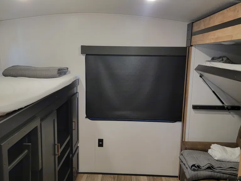 We just added a brand new 2022 Keystone Outback 340BH to our collection. This has plenty of space with a 3 total of slideouts including the private bunkhouse room for the kiddos or other guest. Both couch and dinette fold into a bed with a massive fireplace plus has a 50" TV that pops up over the fireplace.This trailer has plenty of space to sleep 10 comfortable.What's includedKitchen is fully stocked with pots, pans, cooking sheets, cooking utensils, paper plates, paper towels, plastic utensils, and plastic cups. The coffee maker is uses both pods and coffee ground. RecommendationsBring extra pillows Other things to noteThis rig has a water heater that is tankless.