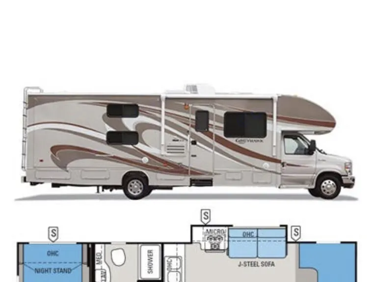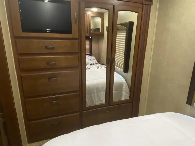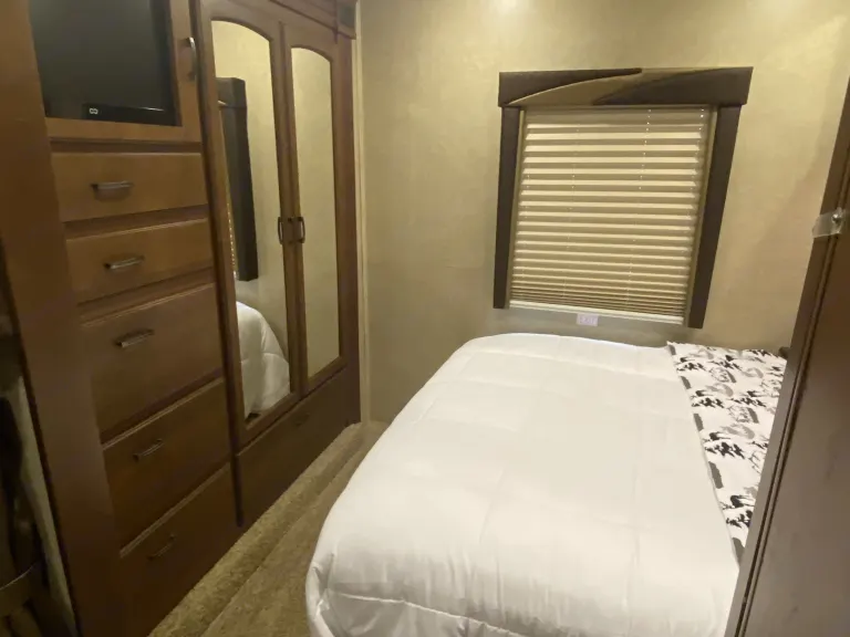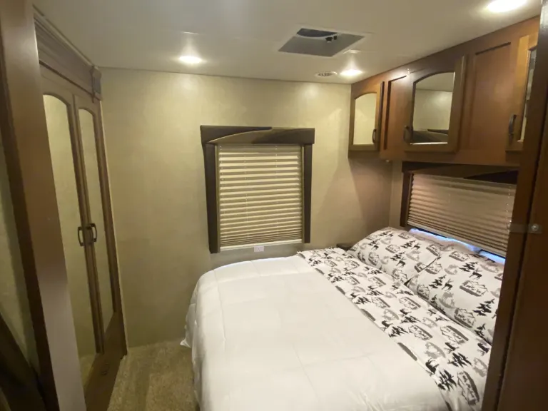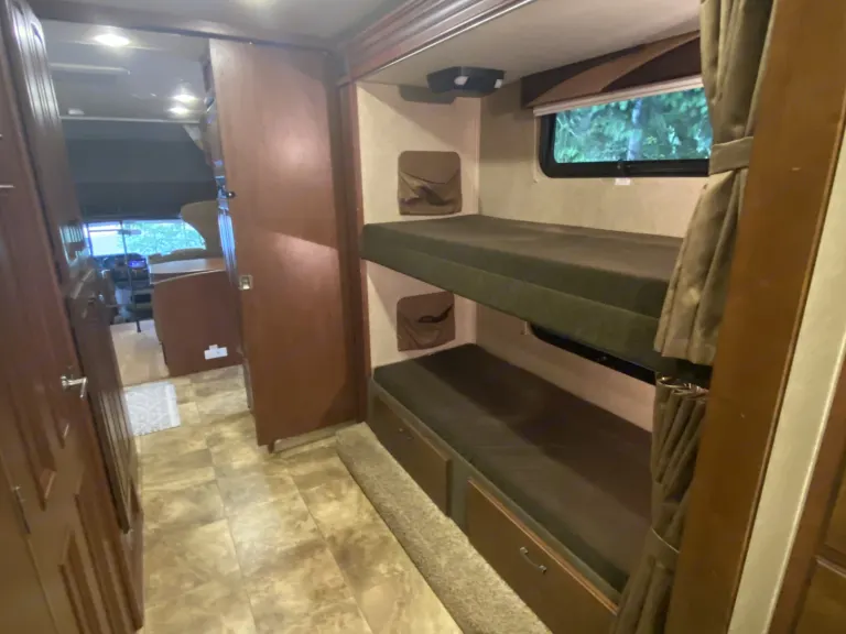 Named after beautiful Whidbey Island, Washington where we started our RV adventure, The Whidbey Weekender has explored the picturesque PNW into Canada, traveled the Oregon trail, explored Yellowstone and adventured down the West Coast to our new home in Southern California where it continues its mission to make exploring the outdoors a truly relaxing and enjoyable experience. Whether you are going remote on an off-the-grid “dry camping” trip or enjoying a weekend staycation at one of the many RV resorts or Camping sites within San Diego and Riverside County, the Whidbey Weekender is available to rent from our your family to yours to make your trip a memorable one. Unlike many RV rentals which you have to pack with everything you’ll need, we have equipped ours with all the necessities, freeing you from the hassle so you can focus on planning your trip. From games and movies, bedding, towels and cookware , to camping chairs, our RV is thoroughly cleaned, packed and ready for you and your weekend bag. And don’t worry, you’ll still have a ton of interior and exterior storage space available. This is just like an Airbnb on wheels.Plenty of space for all your family's needs with all the comfort and amenities of home. This Class C bunkhouse can sleep up to 4 adults and 4 kids comfortably with a full queen size walk-around bed, a bunkhouse, a dinette that easily convert into a bed as well as an extra large bed over the cabin bunk. 2 slide outs create a nice living space with large hallway that flows smoothly. Equipped with 4 TVs (one in each sleeping area) this is an excellent movie night rig. Each bunk has a tv/dvd player and curtains for privacy. Pocket doors can section off the master bedroom, the bunkhouse and the main living area into 3 distinct private areas or can be opened up to get an open floor living plan. The kitchen is equipped with a microwave, toaster, coffeemaker, oven, stove, sizable sink and comes fully stocked. The bathroom has a large domed shower and real glass shower doors for a comfortable experience. The master bedroom has a full mirrored armoire for storage or hanging clothes, lots of deep drawers and spacious over the bed storage. The bunkhouse has two large drawers for each child's belongings. The living area has lots of cabinets and drawers and the exterior has plenty of storage for anything you want to bring. There are also two different optional hitches. One is a hitch mounted platform that can house gear you may want to bring including a motorized scooter with a max weight capacity of 500 lbs, grill, or large ice chests. The other option is a 5 bike hitch rack. The exterior also features a grill, outdoor shower and 10 foot automatic retractable awning. One of the best perks of this RV is its automatic hydraulic leveling system that takes all the guess work out with a mere touch of the button. This RV also has lane changing cameras and back up camera for safety and ease of parking. Low shedding pets that are house-trained are allowed, subject to approval, pet fee and additional refundable pet deposit.**please note that we are currently not renting for dry camping, off road camping or festival camping. What's includedFresh linens for master & bunkhouse