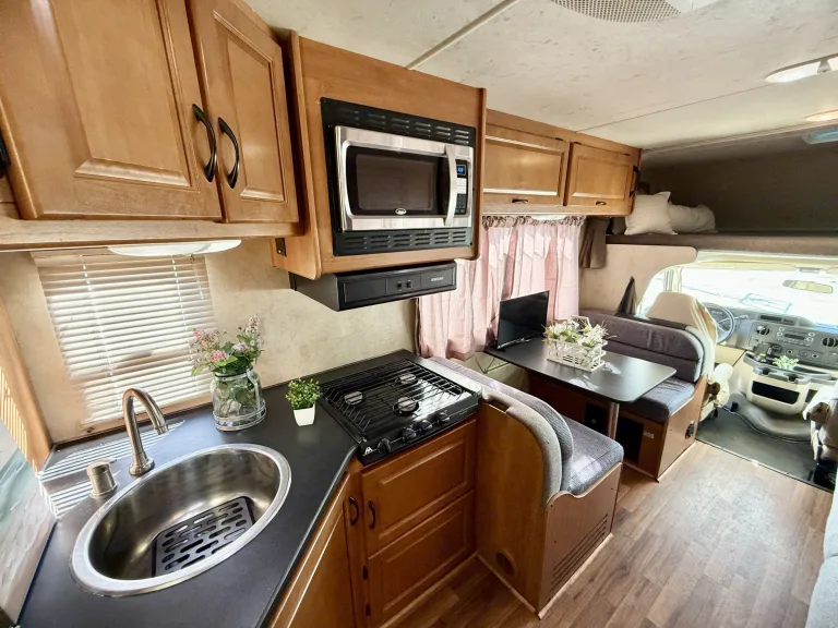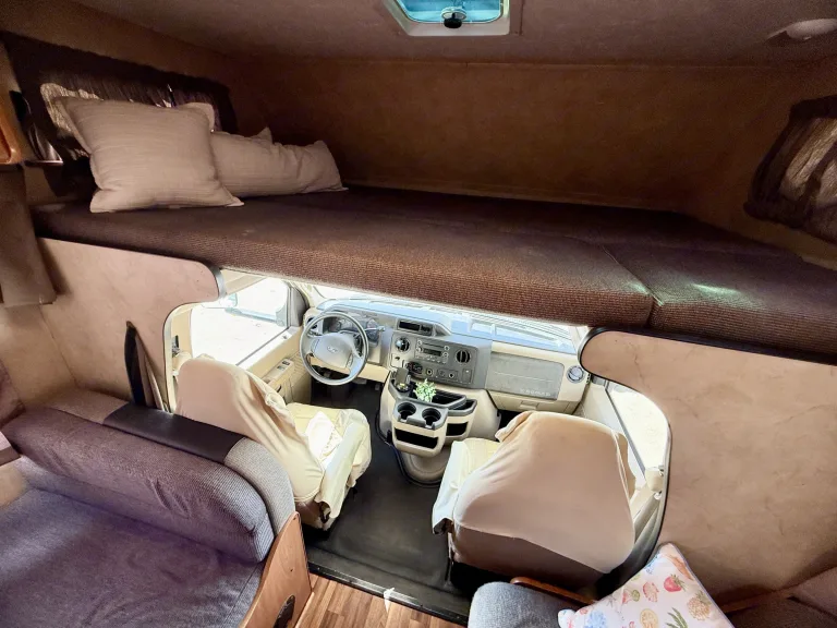 The Thor Majestic 28A is a roomy and comfortable Class C motorhome that’s an excellent choice for RV renters, especially families or groups looking to explore with ease. Around 30 feet long, it comfortably sleeps up to 7–8 people with a private rear queen bedroom, overhead cab bunk, convertible dinette, and sofa bed — perfect for nights on the road. Inside you’ll find a fully equipped kitchen (refrigerator, gas stove, microwave, and sink), a bathroom with shower, and plenty of storage space for gear. Built on a reliable Ford chassis with V-10 power, it offers cruise control and an onboard generator for powering comforts at camp, while features like air conditioning and heating keep you comfortable in varied weather. With its blend of living space, practical amenities, and easy drivability, the Majestic 28A makes memorable road trips and outdoor adventures accessible to first-time and experienced RVers alike.