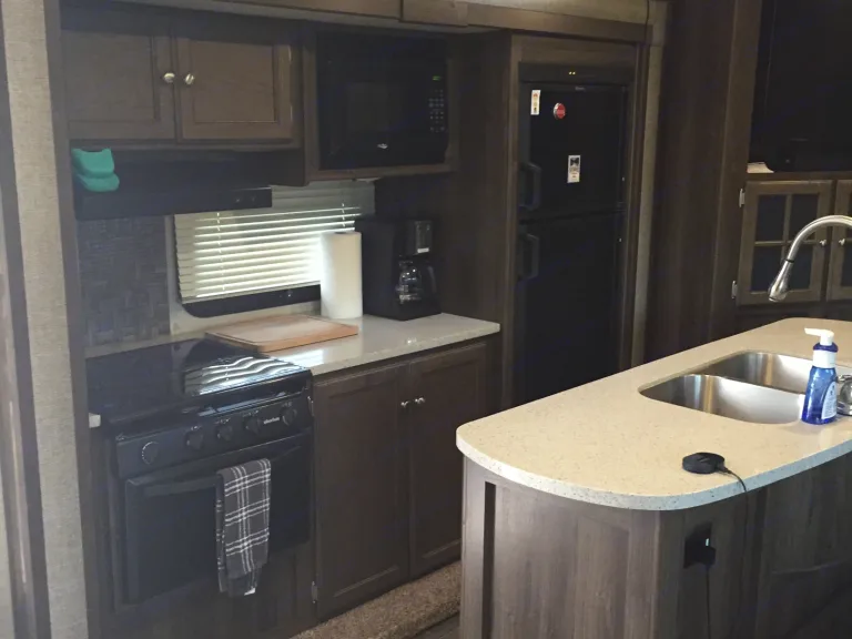 We have a travel trailer that is hooked up with gas/electric/water on our 10 acres. It has a Master Bedroom with a full queen size bed, closets/storage, a bunk room with 3 twin beds and storage, a leather couch that pulls out into a bed, a dining room table that can convert to a small bed, a full inside kitchen with an island and a outdoor kitchen with a sink, fridge, gas stove and tv. We also can move the trailer to your desired local camping spot, if requested for additional fee. However, we do have a farm with goats, chickens, geese, ducks, turkeys and guinea fowl that you can interact with if you want to stay on property!