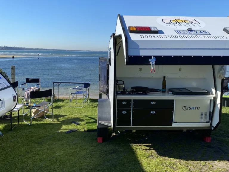 Tow small and Travel big. Located in Victoria. Super lightweight teardrop campers, for the experienced or inexperienced tower. We will make sure you are comfortable in towing before you set off. It has loads of room inside and full kitchen facilities.