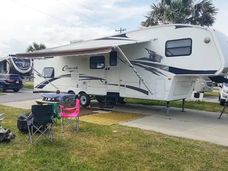 Welcome to our Cougar By The Sea, A 40 ft Keystone Cougar RV where we setup on your favorite Myrtle Beach vacation spot!Please Note That Guest ARE Responsible FOR Booking Their OWN Campground.
