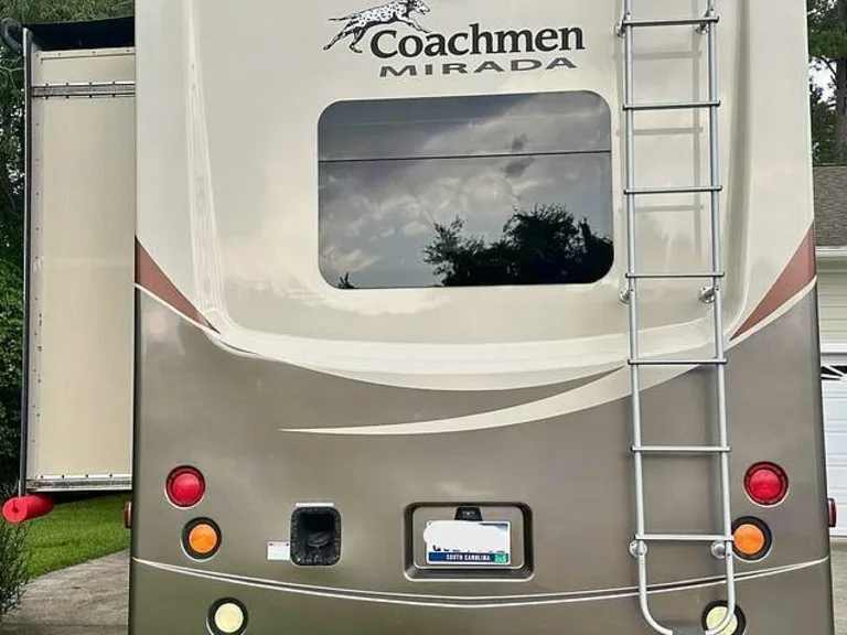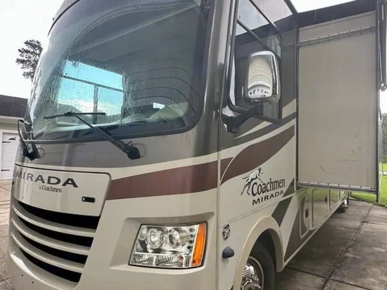 Embark on an unforgettable journey in our spacious and majestic Coachmen Mirada Class A, ideal for families or small groups.Room for Everyone: Comfortably sleeps up to 9 with a variety of sleeping options—1 King, 1 bunk over cab (max weight 350), 1 full tri-fold couch and convertible dinette.As you step inside, a drop-down bed over the cab is tucked away when not in use, a comfy jack knife sofa. Head toward the back, and you will find the king-sized bed promising a restful night's sleep.Dual A/C units keep the space cool, no matter where the road takes you. Picture yourself enjoying a lazy afternoon, a cool breeze flowing through the spacious interior, or perhaps relaxing under the stars with your outdoor kitchen that includes sink and mini fridge plus an outdoor TV at your fingertips.The well equipped kitchen features a residential fridge with an ice maker, stove, oven, microwave, and double sink with water filtration system. The comfy dinette has plenty of room for dining or playing games with the family. This beauty comes with a total of four TVs so everyone will be entertained on those evenings in. Enjoy a luxurious getaway at the beach or off grid camping with the onboard generator.Fully Stocked and Ready for your adventure!