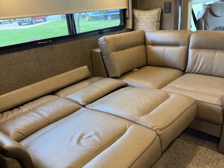 It boasts a king bed in the back, a couch that converts to a bed, a loft over the driving area that will be the kids favorite and there is always the table that will convert to another bed. Sleek luxury is the name of this vacation paridise.