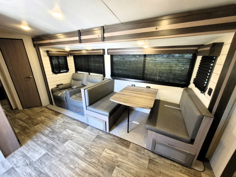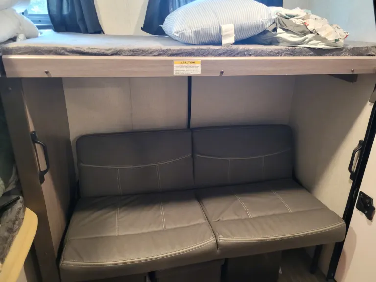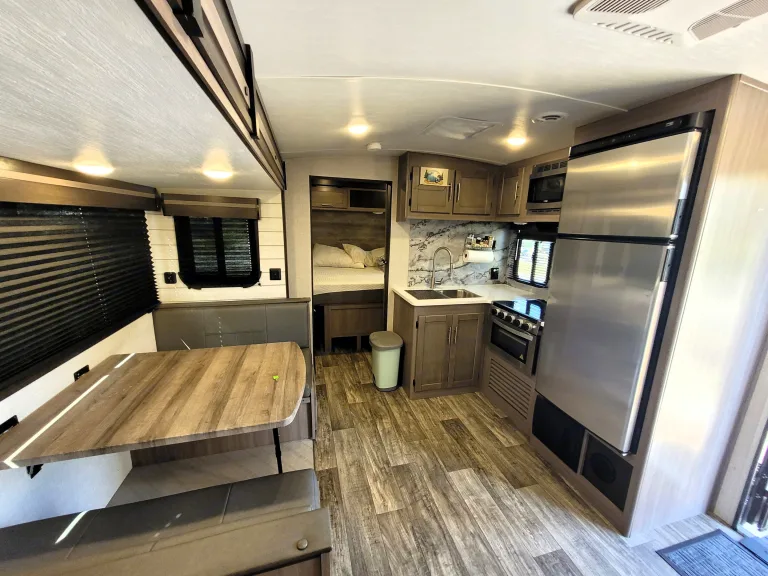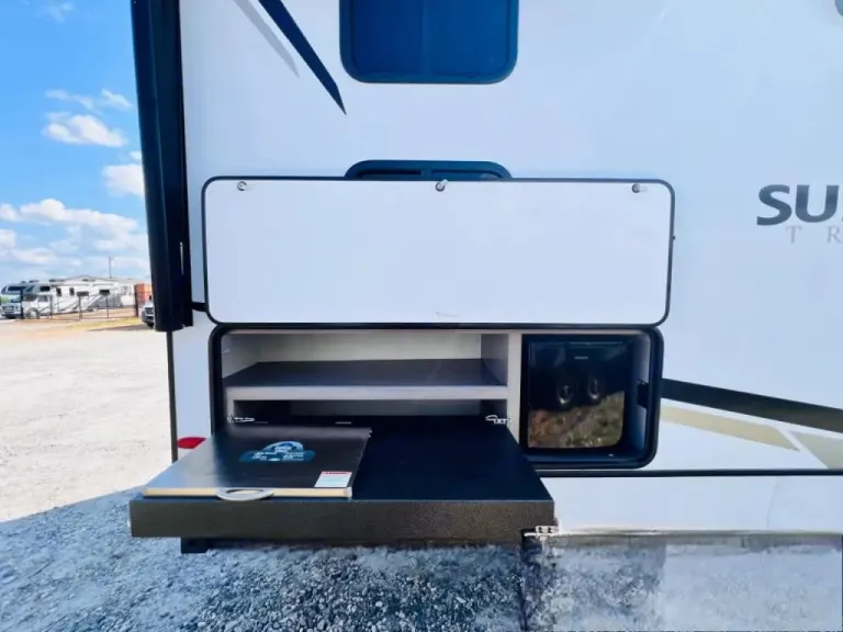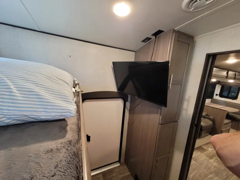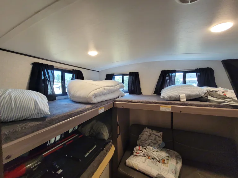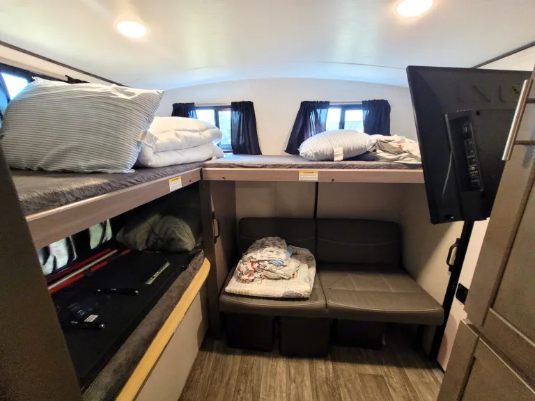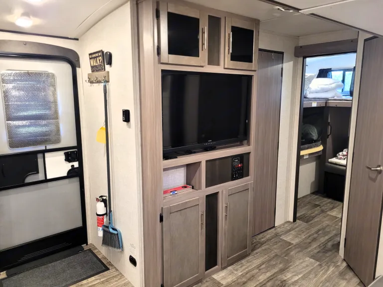 2022 Crossroads Sunset Trail 299QB Travel Trailer for RentAre you ready for the perfect family getaway or a fun-filled adventure with friends? Look no further than this spacious and luxurious 2022 Crossroads Sunset Trail 299QB travel trailer! Whether you're planning a weekend escape or a cross-country road trip, this trailer is designed to provide maximum comfort and convenience.Features & Amenities:Sleeping ArrangementsPrivate Master Bedroom: The front of the trailer features a cozy private master bedroom with a King size bed, wardrobe storage, and overhead cabinets.Bunkhouse for Kids & Guests: The rear of the trailer boasts a dedicated bunkhouse with three bunks and a fold-out sleeper sofa—perfect for kids, teens, or additional guests.Convertible Dinette & Sofa: The dinette and tri-fold sofa can also be converted into extra sleeping spaces, accommodating up to 10 people total.Kitchen & DiningFully Equipped Kitchen: The kitchen comes complete with a large stainless steel refrigerator, 3-burner stovetop, oven, microwave, and double sink, providing everything you need to prepare meals on the go.Spacious Pantry & Ample Storage: Store all your food, snacks, and essentials in the generous pantry and numerous cabinets throughout the trailer.Comfortable Dining Area: Enjoy meals together at the U-shaped dinette, which also converts into a bed for extra sleeping space.Living SpaceOpen Concept Living Area: The open floor plan creates a bright and welcoming space to relax after a day of outdoor adventures.Entertainment Center: Stay entertained with a flat-screen TV, DVD player, and Bluetooth-enabled stereo system with both indoor and outdoor speakers.Stylish & Modern Decor: Modern, high-end finishes throughout, including wood accents, LED lighting, and sleek flooring.BathroomFull Bathroom: The bathroom features a shower/tub combo, sink with vanity, and a toilet—perfect for freshening up after a day of hiking, swimming, or exploring.Outdoor Shower: For added convenience, there's an exterior shower to rinse off sand or dirt before heading inside.Outdoor LivingPower Awning with LED Lighting: Enjoy shade and comfort outdoors with a large power awning and LED lighting, perfect for evening relaxation.Outdoor Kitchen: Take your cooking outdoors with the exterior kitchen, featuring a fridge, sink, and propane cooktop.Pass-Through Storage: Bring along all your camping gear and more with ample exterior storage space.Electric Stabilizer Jacks: Quick and easy setup with electric stabilizer jacks and a power tongue jack.Additional FeaturesClimate Control: Stay comfortable year-round with a ducted air conditioning system and furnace for cooler nights.Pet-Friendly: We welcome well-behaved pets on your trip! Let your furry friends join in the adventure.This 2022 Crossroads Sunset Trail 299QB is the perfect blend of comfort, style, and functionality, making it the ideal choice for your next vacation. Whether you're camping at a national park, heading to the beach, or exploring new destinations, this trailer will be your home away from home!