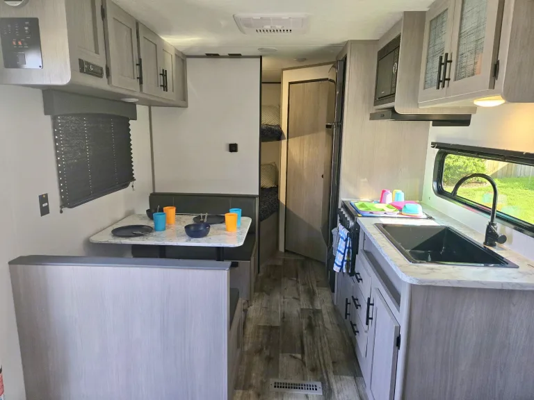 Step inside the Coleman Lantern for the ultimate outdoor getaway. Spacious leg room that sleeps up to 7 Adults comfortably and on demand hot water.The travel trailer is equipped ice cold AC and fire hot furnace heating. It includes 1 TV, indoor/outdoor stereo, and a large LED awning to beat the heat.Book now for your perfect family vacation rental!