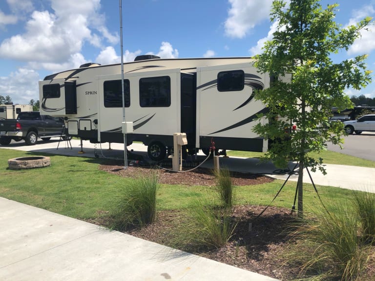 Renters are responsible for reserving/ paying for campsite.This is a 40’ 5th wheel w/ 3 slides, you need a minimum of 45' length campsite. NOTE- we are NOT responsible if the camper does NOT fit on the site and will NOT attempt to place on smaller site.