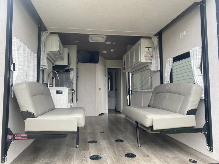Toys must be strapped down.What's includedToilet paper, Paper towels, Pots, Pans, Dishes and Utensils, DVDs.RecommendationsCamping is for making memories with the family.