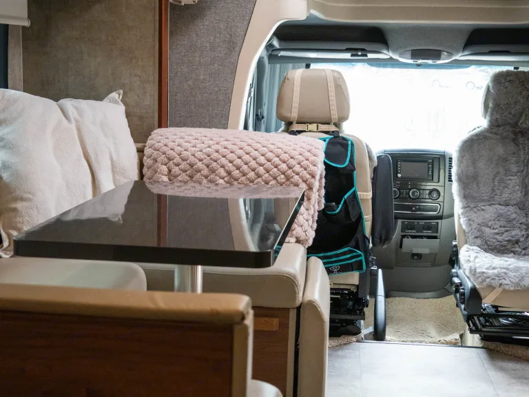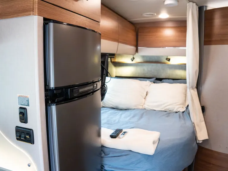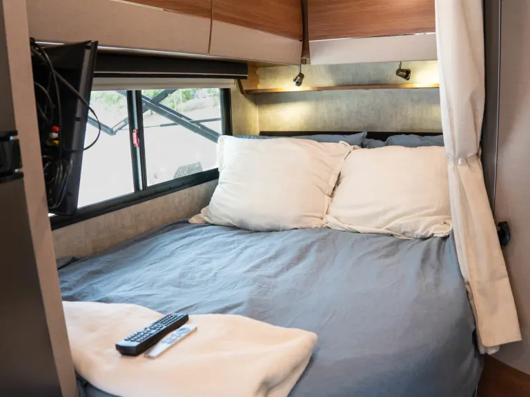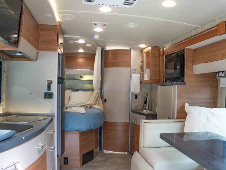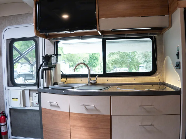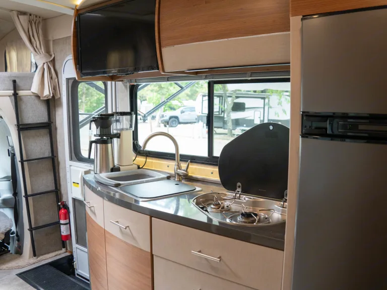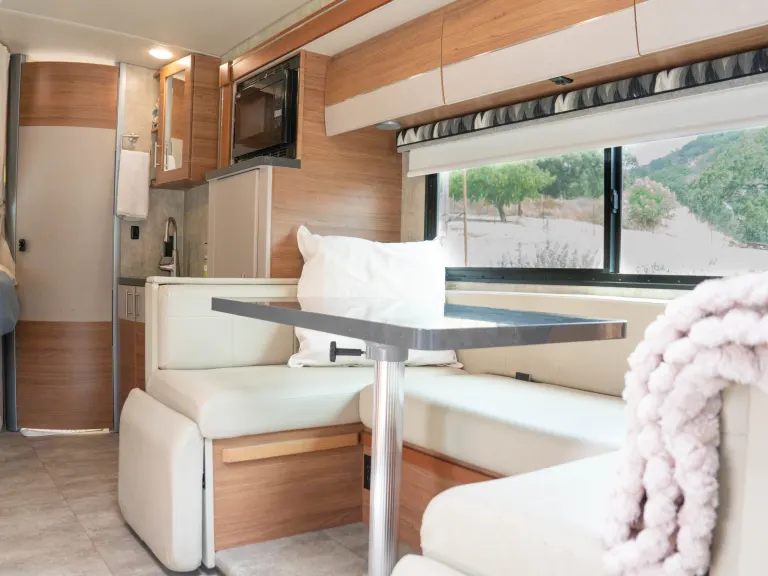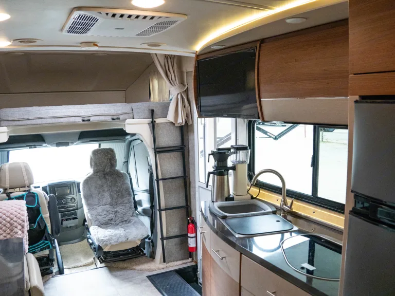 Welcome to your home on wheels – a comfortable and thoughtfully designed RV that’s ready for your next adventure. From organic bedding to biodegradable cleaning supplies, every detail has been carefully curated to ensure your journey is unforgettable.The RV is stocked with a Technivorm Moccamaster coffee maker and organic, fair-trade beans, so you can start your day with a perfect cup of coffee while immersed in the tranquility of nature.If you want comfort and style in a motorhome that can drive just about anywhere, the Navion® is a great choice. Combining the Mercedes-Benz Sprinter chassis with Winnebago’s® legendary SuperStructure® construction, you get a coach that is fuel-efficient, powerful, and built to the highest standards.The floor plan includes a spacious u-shaped dinette that turns into a full-sized bed, a queen bed located in the back, and an overhead bunk, sleeping up to 4 comfortably. Thoughtful touches such as swivel cab seats with genuine sheep fur covers, and LED lighting, along with two TVs, will bring ease and functionality to your trip.If you'd like to watch a walk-through video of the RV, please check out the link below: