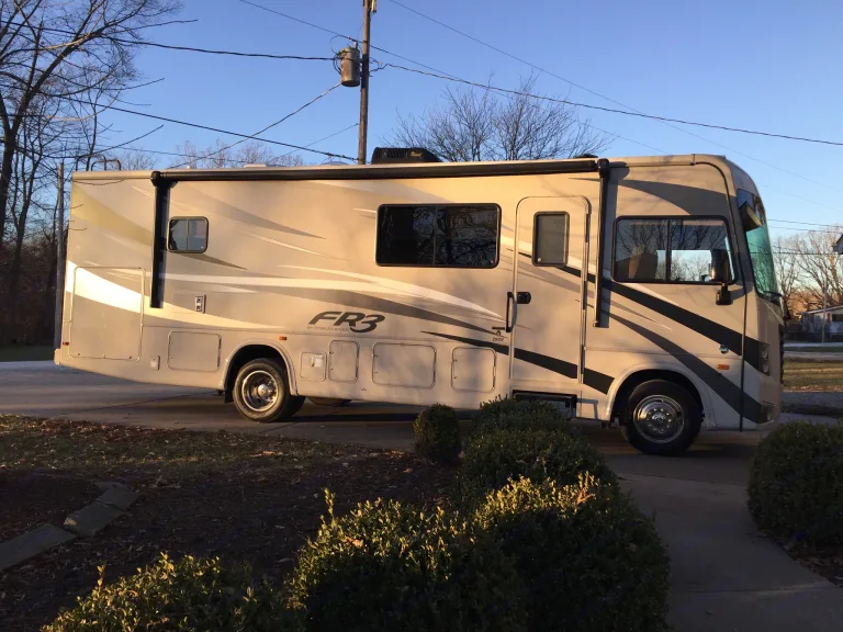 In excellent condition.Low Mileage - 12,000 Miles . 2 slide outs: kitchen /living room and bedroom. King size bed, walk-in shower in bathroom. Refrigerator, oven, gas stove, microwave. 3 TVs, airconditioning, furnace. Motorized lighted canopy. Can sleep 6.
