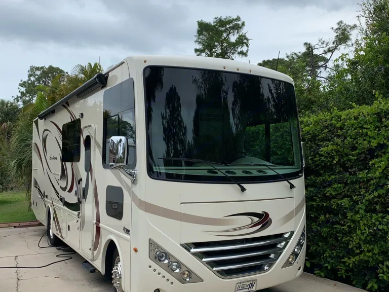 This fully equipped Class A Motorhome is perfect for your vacation or home away from home. It's spacious with a super long slide that extends the bedroom, kitchen and living areas. The outside entertainment area has a TV and outdoor kitchen. Great for watching the big game! Comes with a large pop-up tent for shade. Discount rates available for monthly rentals. Pets welcome with pre-approval.*NO out of state rentals. At this time, we're only allowing rentals that stay within the state of Florida*
