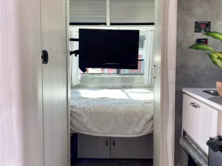 JVC Stereo with Bluetooth® connectivity streams music from your devices on the stereo, which also plays CDs and AM/FM radio. Whether you’re plugged into shore power or boondocking on battery power, you can enjoy watching the 22" HD LED TV with a DVD player.