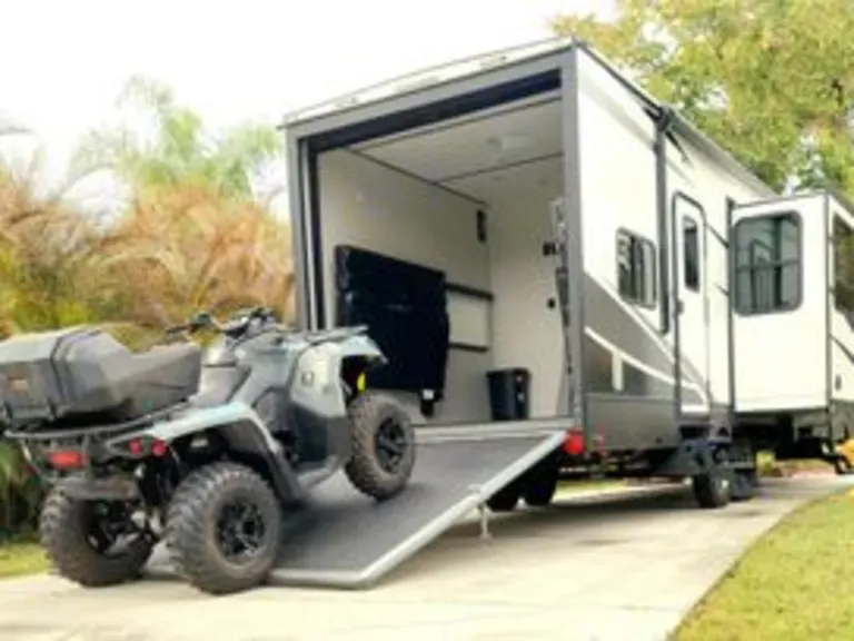 High Ceilings 1/2 ton tow-able.ALL-IN-ONE Package"Enjoy every minute of your next weekend both inside and out with this Vapor Lite travel trailer. Once your toys are unstrapped from the tie downs, you can have your kids use the garage area as their playroom, and the dual opposing sofas can be folded down into extra sleeping space at night to help this trailer sleep six people comfortably. You will appreciate the convenience of the dual entry bathroom with one of the entrances going into the front private bedroom. You will also find a U-shaped dinette and kitchen appliances. Step inside one of the two entries, and relax!Fuzion Impact 28V Highlights:Holds (1) Full sized ATV or up to (3)dirt bikesFurry Friends AllowedDual Burner Kitchen Stove topMicrowave/Sink/PantryHot Showers/Toilet/Outside ShowerAC/Heater Both are over sized for unitElectric Braking systemTowing this travel trailer with a SUV or lightweight truck is no struggle at all.Feel free to reach out no matter the experience with Trailers and I will assist in answering any questions you may have.ChrisOther things to noteThis trailer is our families 2nd home and not a rental rocket. We want you to enjoy it and treat it as your own, so if it is returned muddy and/or excessively dirty, which is at the sole discretion of the owner, you will be charged a additional $250 cleaning fee. This fee is not to include any damage or stains that will need to be professionally cleaned, repaired or replaced at the cost of the renter. There will also be a $100 fee for cleaning out the Grey and Black tank if those are not cleaned out before the return. Don't worry, I can go over places where and how to do this process on rental.