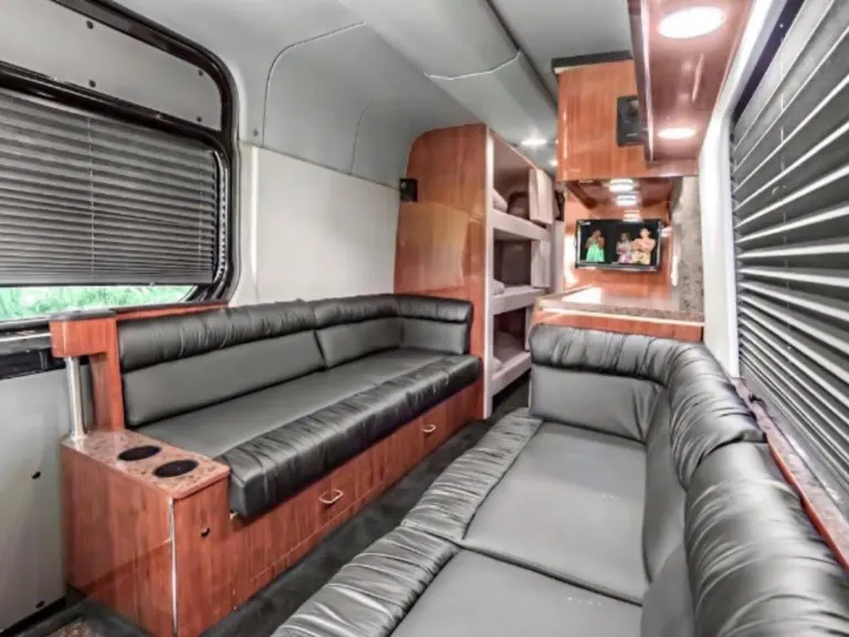 Perfect for your family/friends road trip or your band tour. This 24’ Mercedes Sprinter has 5 bunks, a large lounge, and kitchenette.