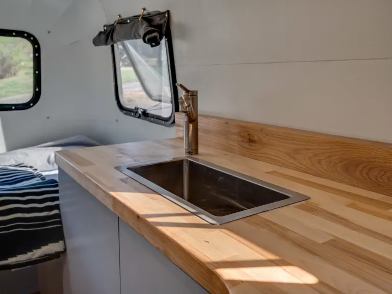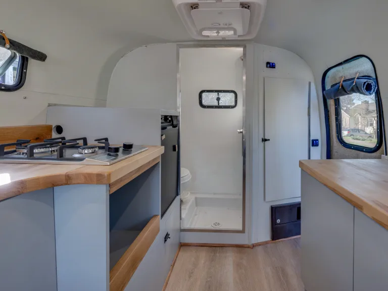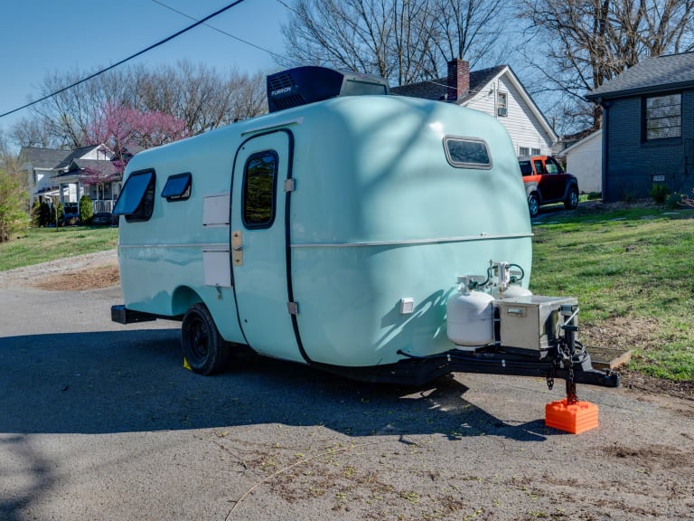 The Cocktail Casita is a full renovated 1984 Casita trailer. Featuring brand spankin' new hardwood countertops and dinette table, the Cocktail Casita boasts a dinette which converts into a full-sized bed, a two-burner stovetop, mini-fridge, sink, shower, and toilet. The AC/Heater unit is brand new and powerful as hell. Please note the AC/Heater unit only works when plugged into 30 AMP shore power.The retro-inspired Casita features brand new hardwood countertops custom made by a talented Asheville, NC artisan at ROM Customs, a beautiful bar, and both internal and external storage. Easily access plugs near the bed as well as the AC/heat control.The Cocktail Casita includes a guide to properly connecting and using the trailer. Please read before your booking and holler with any questions!All cables, hoses, and adapters are provided.What's includedHome goods included: