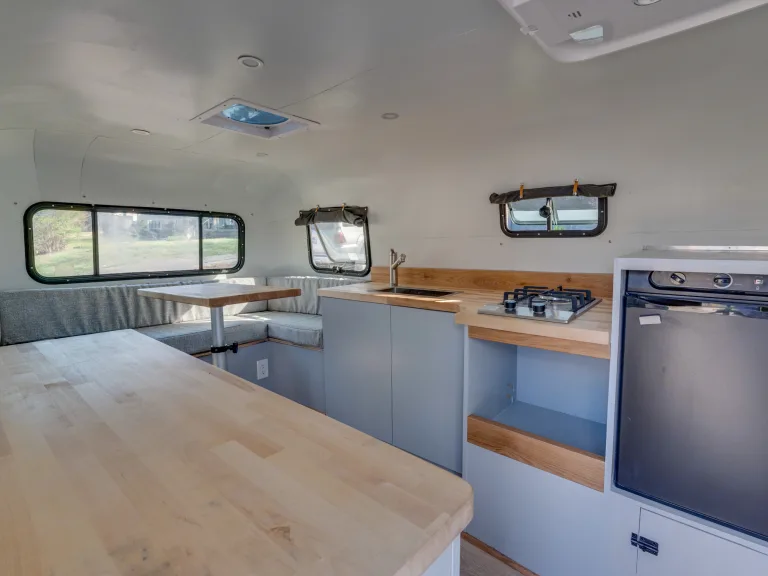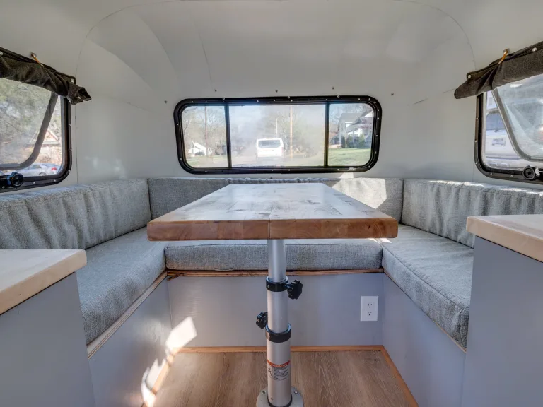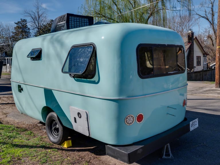 The Cocktail Casita is a custom renovation of a 1985 Casita. It's interior features hardwood reclaimed wood tables, a mini, fold out bar for passing items without opening the main door, and a seriously awesome paint job. Pretty much everything in this thing is new except it's iconic egg-shaped shell.