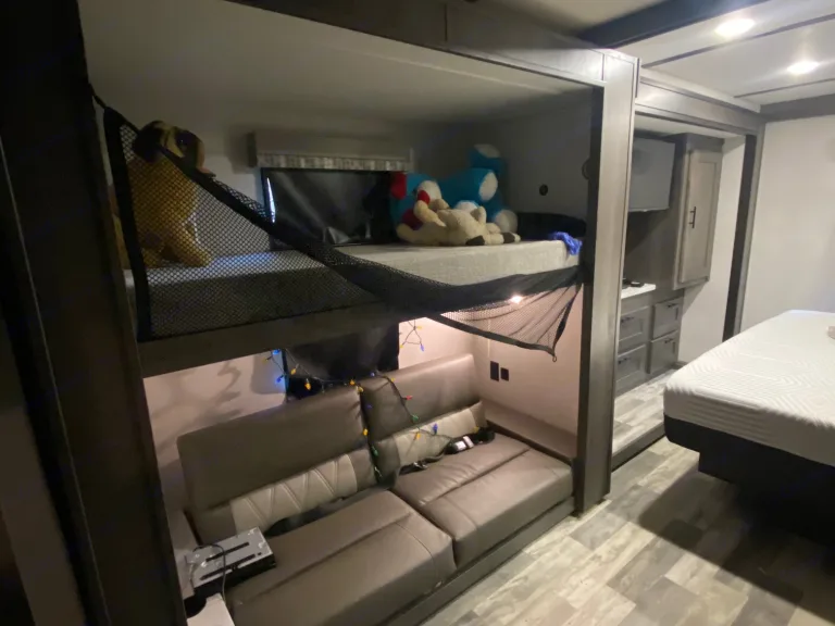 It's 5:00 Somewhere is a comfortable and spacious brand 2021 Class A Motorhome perfect for families and couples. It is 34 ft long and features 2 slideouts and 1 awning (power retractable). One sofa (turns into bed) and kitchenette (turns into bed) with 32 inch LCD TV. Also has a hide-a loft drop-down full bed and a set of bunk beds that is perfect for kids. with TV and DVD available across from bunks. Master bedroom features king size bed and large wardrobe, 24 inch LCD TV (Direct TV available on TVs (at additional cost of $50 per month). Exterior mounted sideview cameras, exterior TV, pass through storage, four point fully automatic hydraulic leveling jacks, Bluetooth, solar paneled generator. Kitchen has a three burner stove, oven and sink and spacious refrigerator and freezer. Private toilet and shower area. What's includedFrom a previous renter: Maya and Co. were an extreme pleasure to work with. From the get-go, communication was seamless as they were quick to respond and on top everything. Unfortunately, our trip was canceled at the last minute due to Hurricane Ida. While the RV had already been fully paid for with zero ability to recover through cancellation, Maya was very flexible and worked with Outdoorsy to issue our group a full refund (extremely generous!). Thank you to Maya and Co. for working with us, and we look forward to re-booking down the road! Other things to noteNo smoking, no drugs. This is a dog friendly RV but please let me know if you plan to bring your doggy. Cleaning fee of $150 will apply to all renters. Thank you!