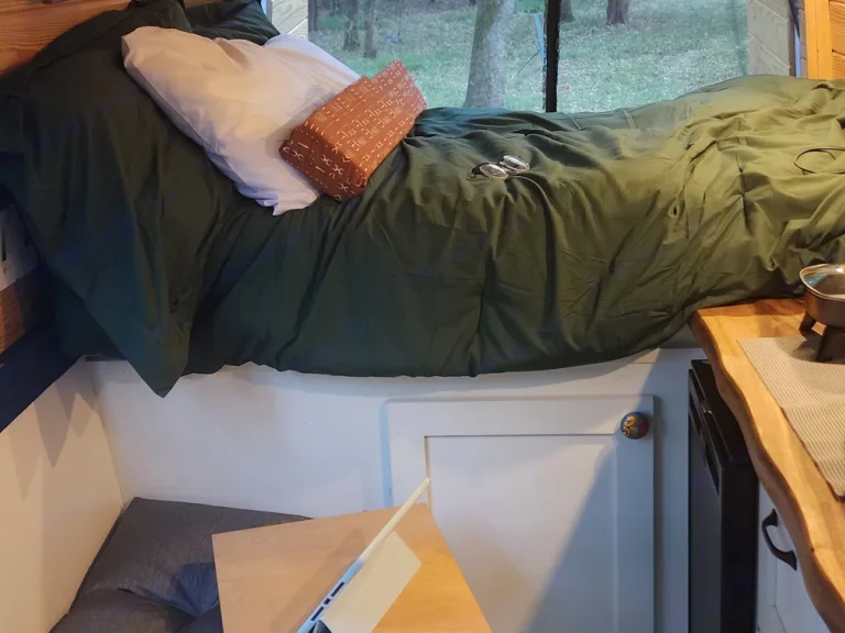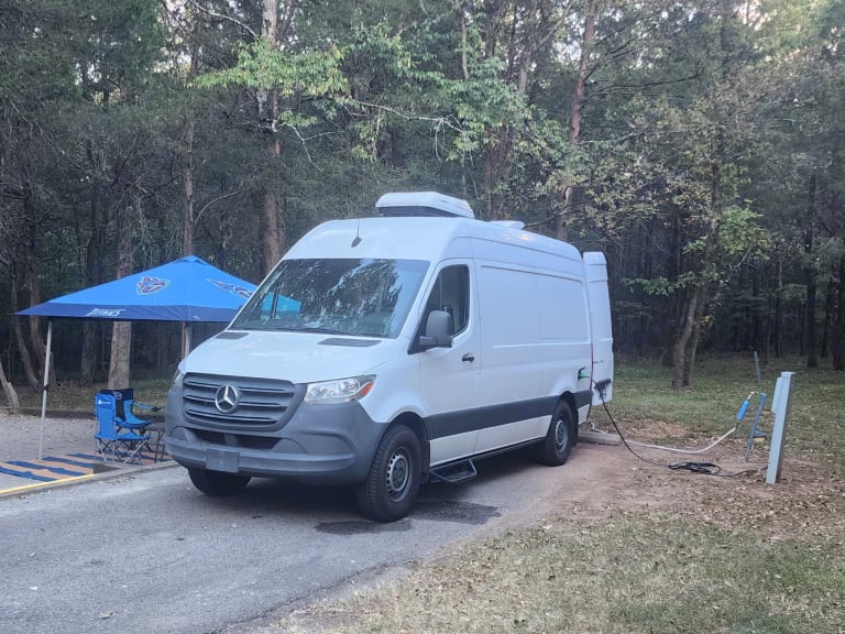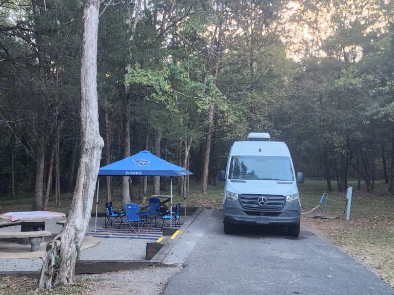 Welcome to an amazing experience. This spacious van has everything you need and more to enjoy your next adventure. There is plenty of storage for your things. There is seating for 4 when you are at your destination and a very comfortable bed that can be expanded for those who need extra leg room. There is a coffee maker and portable cooktop that can be used for making a delicious meal to eat (a pot, pan and some utensils provided). There are solar panels on the rooftop that powers outlets and lights. The air conditioner, when the van is connected to an electrical source such as generator or other camping source, does an amazing job of cooling quickly. There is also a portable toilet option and outdoor shower attached to the rear door for convenience.The level of comfort this van offers along with the beautiful design is just waiting for your booking. I hope to be able to share it with you soon.What's included• tent