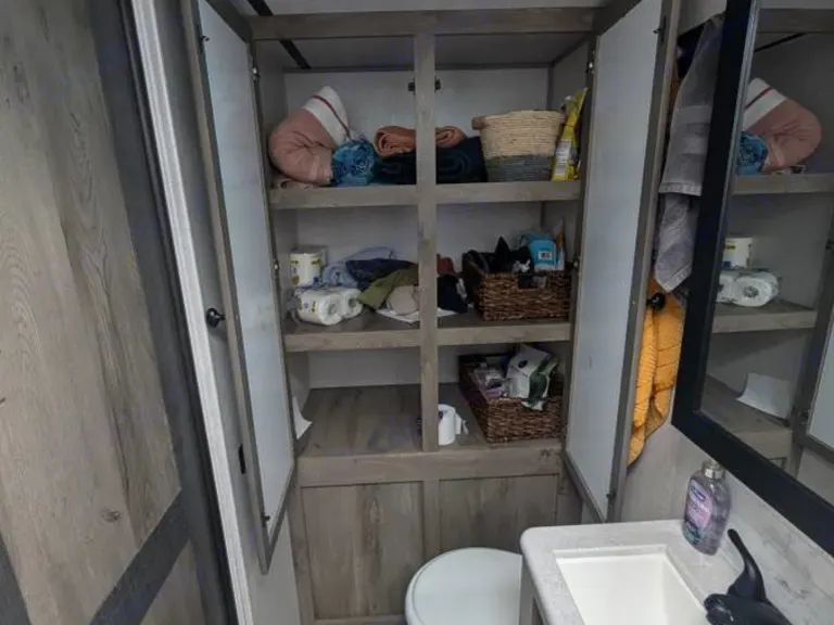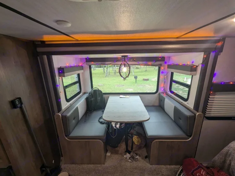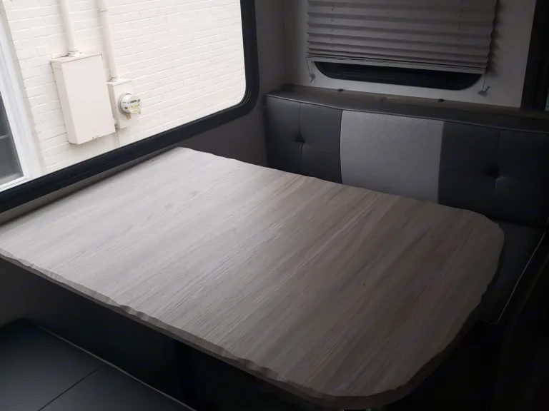 This thing is nicer than my first apartment (and 2nd, and 3rd...), and I don't just mean back in college. Slide the dinette out and have plenty of space to move about whether you're relaxing on the cushy bench seats or lounging on the queen bed, and enough storage to fit just about everything. Whether it's the AC or heat it kicks on quick and stays well insulated, and the hot water cooks up a nice shower too!
