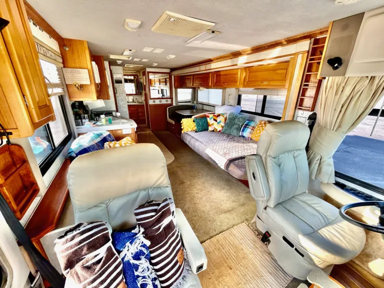Take adventure to the next level in this 36' Class A RV aptly named "The Expedition" . Travel and Surf with friends or enjoy a romantic interlude beachside at sunset. Outfitted with 2 boogie boards for your wave riding pleasure and 2 beach cruisers with a basket, bell and cup holder, to explore the local landscape in style or grab supplies from the nearby market. This adventure-mobile is the perfect back drop for your next unforgettable journey. Book now. Namaste.What's included2x camping chairs and 1x camping couch
