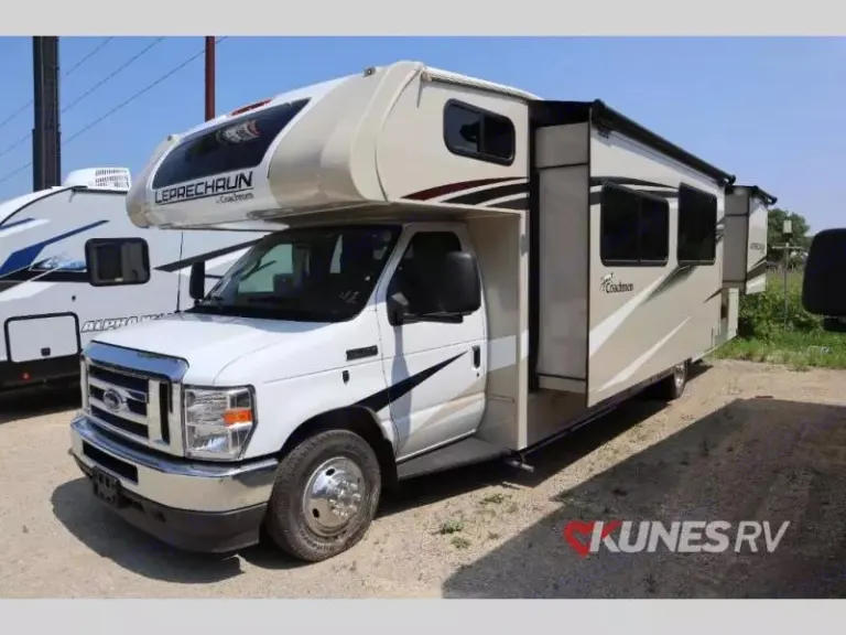 The 2023 Coachmen Leprechaun Ford E-450 (7.3L V8 gas engine) is a Class C RV that promises comfort, convenience, and performance for all your travel adventures. This RV is finished in a stylish 319MB Beige exterior color, while the interior boasts a luxurious Jasper color scheme.