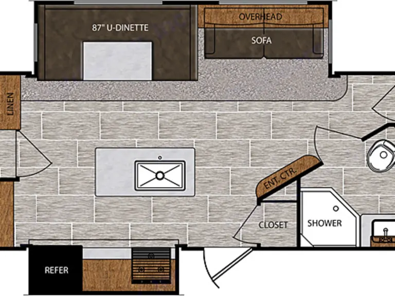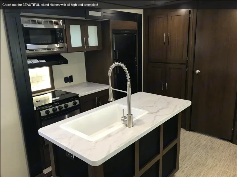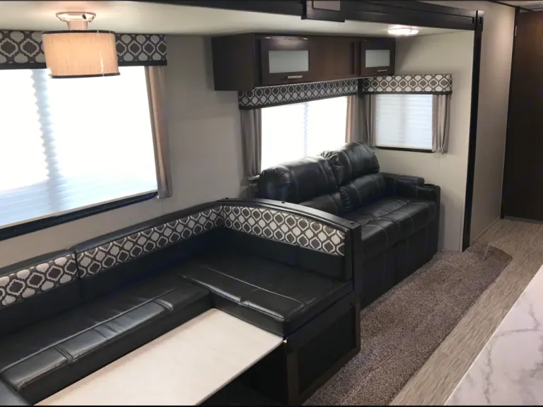 Trade the bustle of city life for the tranquility of the outdoors. The Avenger camper offers the latest top of the line features, offering an outdoor kitchen for your outdoor grilling needs, outdoor shower so you can wash the sand off of your feet before entering the camper, outdoor awning with led lighting. The interior offers 3 slideouts providing lots of space for a large family and sleeps 10 with and island kitchen, bunk room, and a master bedroom!