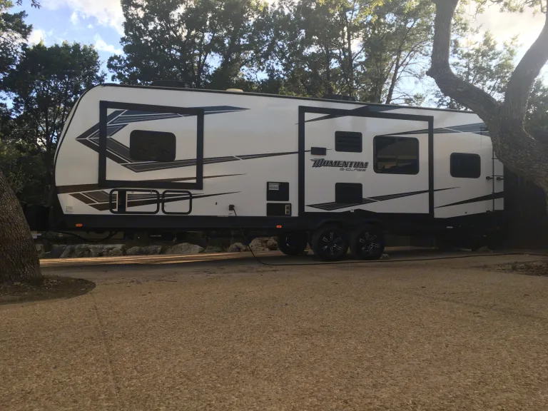 Can you say Huge back porch with its own awning!! Yes the ramp folds into a porch, fold down couches, happy jack king bed comes down from the ceiling,, and seperate queen in master bedroom. 2 rv’s indoor outdoor sound, outdoor kitchen!! 2 refrigerators, generator, 30 auxiliary gas tank for the toys! Outdoor shower to rinse off and fully stocked kitchen with kuerig, air fryer, toaster, pots, pans, and all needed kitchenware to make your getaway easy!! 2 ac’s huge shower, and with the generator and large water tanks, it’s fully contained if you want to be off the grid! What's includedBasic sheets, comforter and towels. I encourage you to supply whatever bedding you sleep best in. Bringing your favorite pillow is a must😴!I have plenty of camping accessories available so if there is something you want (extra chairs, ice chest, specific items that you don’t have,) just ask and I’ll supply it if I have it or can get itRecommendationsThere are so many places now days to set up an rv that if you can think it, you can do it! Other things to noteAbsolutely Zero smoking allows in the rv, this includes vape’s, cigarettes, cigars, weed. Deposit will not be returned if evidence of this is found. Pets must be approved prior to rental. Please return it as nice as it was when you arrived. Currently, with summer upon us, the rv will only be rented to those wanting set up and not taken or pulled. Thank you