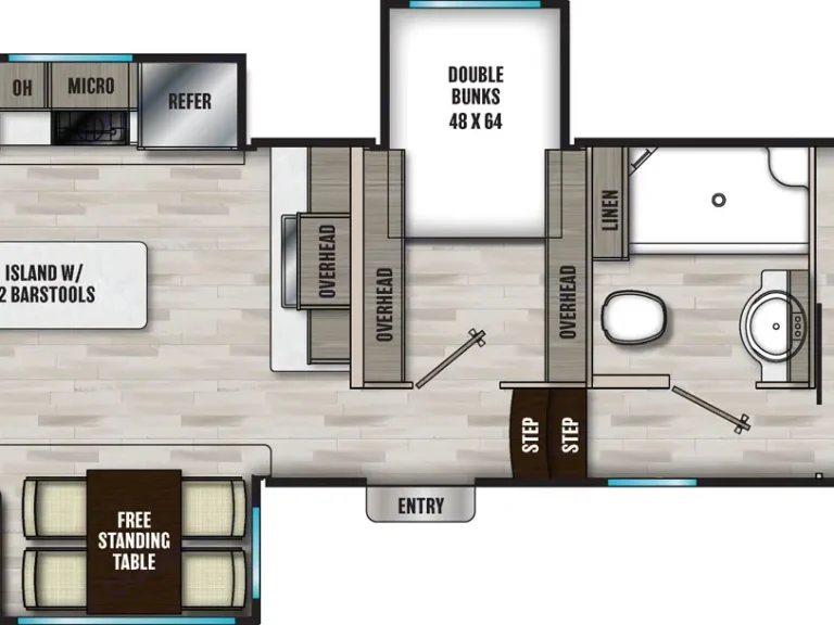 We take care of the work so you can Relax!! Your trailer will be delivered & setup with the AC & fridge turned on. Once you are done, we will pick it up & take care of dumping the tanks. Enjoy the features of this rental such as a refrigerator, stovetop, microwave, bathroom & a Cold AC!! Our staff is available during your stay to answer any questions & take care of any issues.This rental rate Includes delivery/pickup, set-up, propane, basic insurance, basic cleaning, tank flushing & dumping (at on site dump station). Enjoy Off-Season discounts starting at 10% off. Rates are based on a 3 night min. Some 2 night dates are available, call to check your dates. Interested in learning more? Scroll below for more add-on details, rules, insurance coverage, rates and floor plans.Queen bed