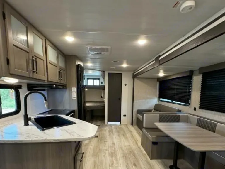 Sleeping up to 5 with a queen, bunks, and dinette means space for all.