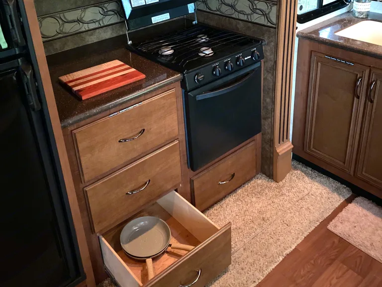 This camper requires a minimum of a 30-Amp Hookup, a 50-Amp is ideal. 44" or longer campsite. Two-sided pop-out.
