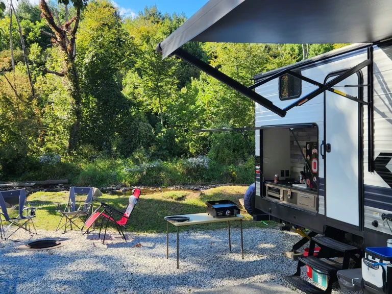 Stay comfortable in any season with A/C and heat, plus a small additional heater and fan if needed. Wind down inside with the Smart TV and Bluetooth stereo or enjoy the outdoors with four provided camp chairs and a shaded awning.Family Fun Touches