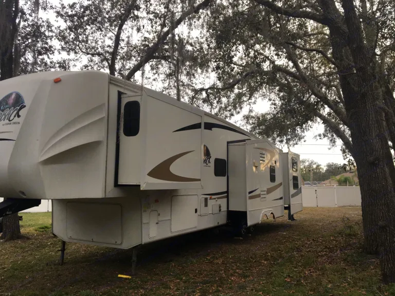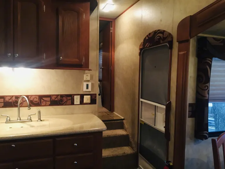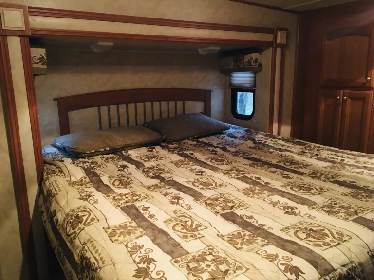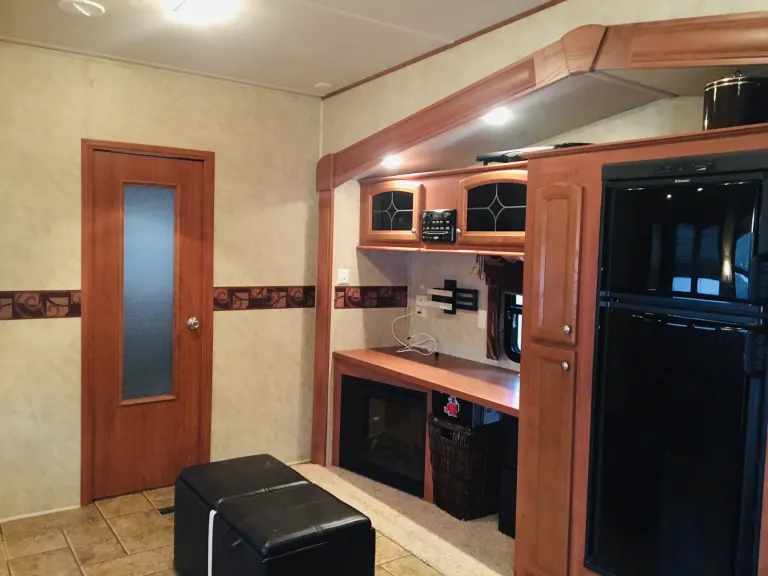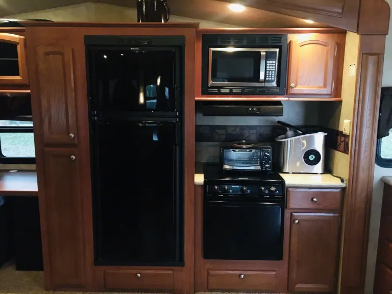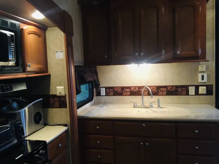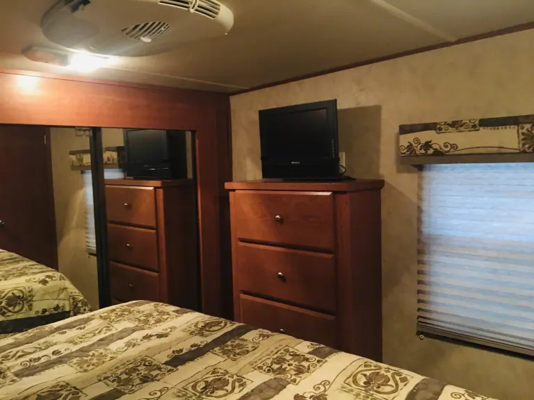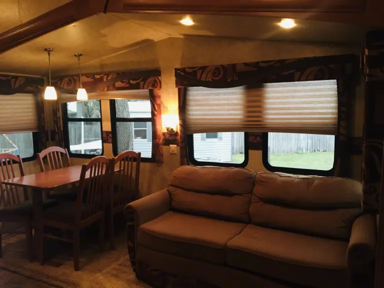 Plenty of room for a family. Outdoor propane grill, kitchen and second half bath with a door to the outside. Plenty of tables and chairs for outdoors to sit around a fire .What's includedTowels, linens, cooking utensils, plates, outdoor camping chairs, fold up tablesRecommendationsYour RV site must be able to accommodate 40ft with 4 slides. Other things to noteNo smoking inside unit. Small pets welcome.
