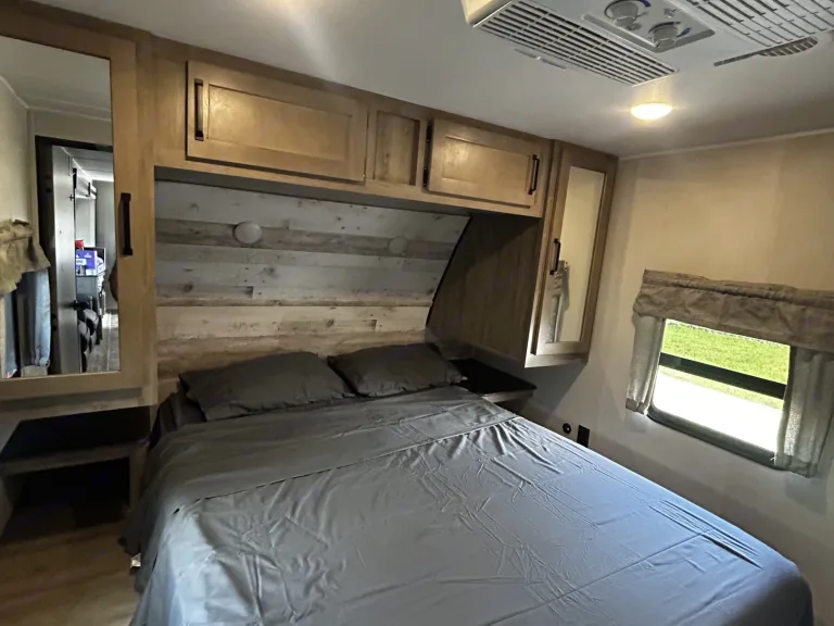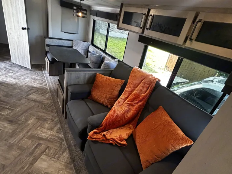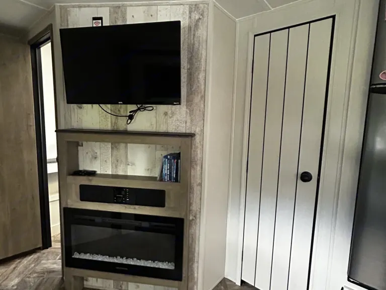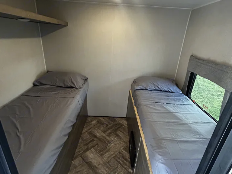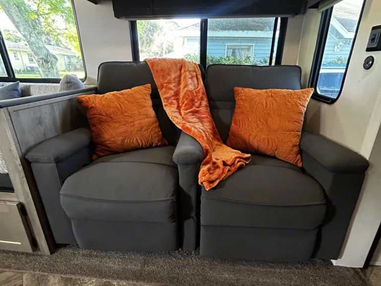 Our camper is a comfy and fun escape from reality that offers great luxury amenities at an affordable cost. 2 separate rooms on each end of the camper allows privacy and the dinette and recliners have the ability to invite additional guests for a fun family event. A second entry into the bathroom allows for easy access to clean up and continue on with the fun. A Blackstone grill available right outside the camper and a shower outside to rinse off before coming in. This camper has all the camping fun while still having the convenience of your daily needs. What's included• Games