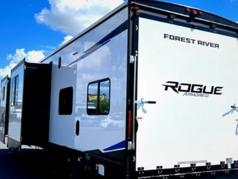 Looking for a toy hauler that feels more like a luxury vacation home than an RV? You just found it. Our brand new Vengeance Rogue Armored is fully loaded, family friendly, capable, comfortable and designed for unforgettable adventures on or off the grid.Enjoy movie nights on the huge projection screen in the master, surround sound speakers throughout, relax in a spacious modern interior, and spread out comfortably with multiple sleeping areas for adults and kids alike. Solar reflective windows, dual air conditioners, and smart lighting keep everyone cool and comfortable.Unwind in the spacious master bedroom with a plush memory foam mattress topper, convenient charging outlets for all your devices, and generous wardrobe storage for longer stays.This rig is built to go anywhere with a 6000-watt generator, 200-watt solar system, and a massive 102-gallon freshwater tank. The 30 gallon fuel station with digital readout makes refueling your toys easy and convenient.The garage is a standout feature with extra tall 8-foot doors, 5,000 lb. tie-downs, sleeping accommodations for 4 adults, a second air conditioner, and its own half bath. Once parked, the ramp converts into a full patio with porch railing, creating an amazing outdoor living space.Outside, enjoy the outdoor grilling area with ice maker and fridge, 18-foot power awning with LED lighting and LP quick connect, plus camping chairs and a folding table included.After a long day, refresh with endless hot water from the tankless water heater and spa-style shower head.Backing up and nighttime arrivals are easy with backup cameras, tire pressure and temperature monitoring, and 360 degree surround lighting when reverse lights are activated.Highlights renters love: